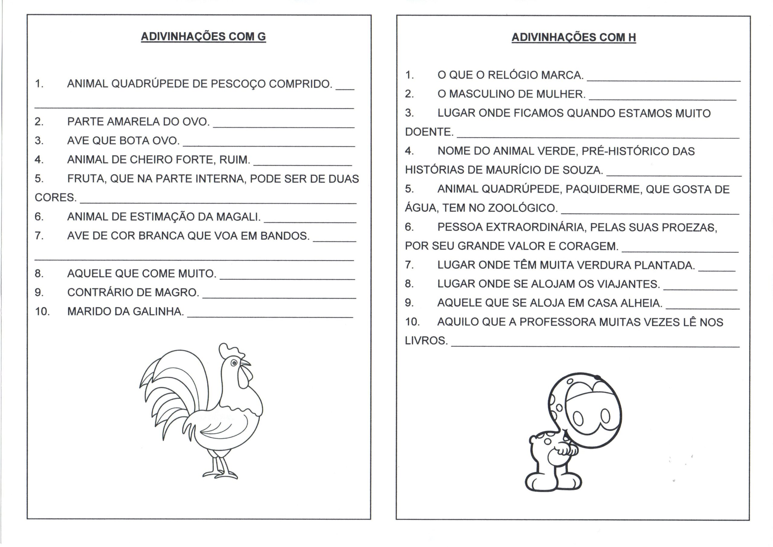Adivinhas e Adivinhações com G e H é uma Atividade de Adivinhas simples para o Ensino Fundamental.