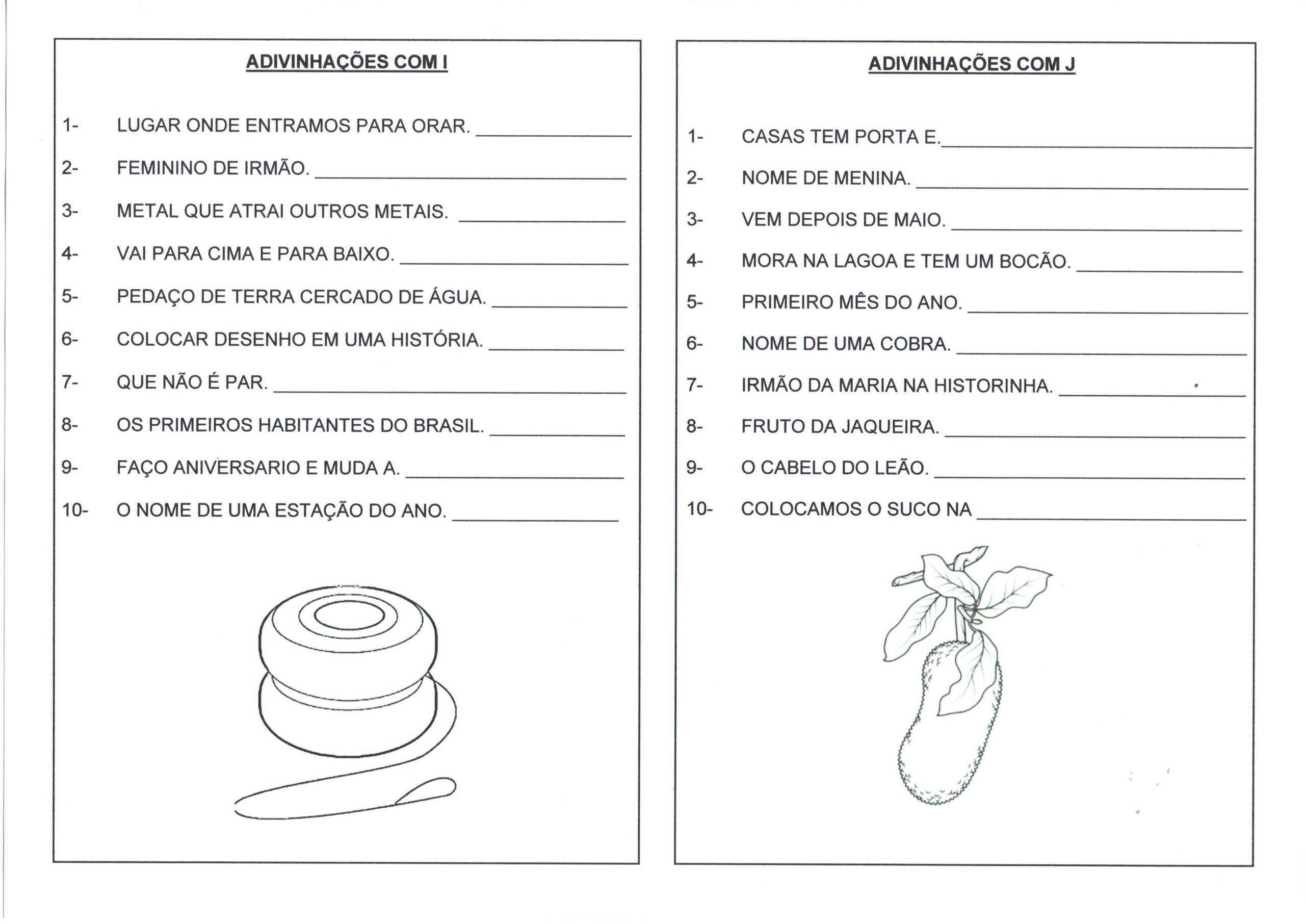 Adivinhas e Adivinhações com I e J é uma Atividade de Adivinhas para o Ensino Fundamental.
