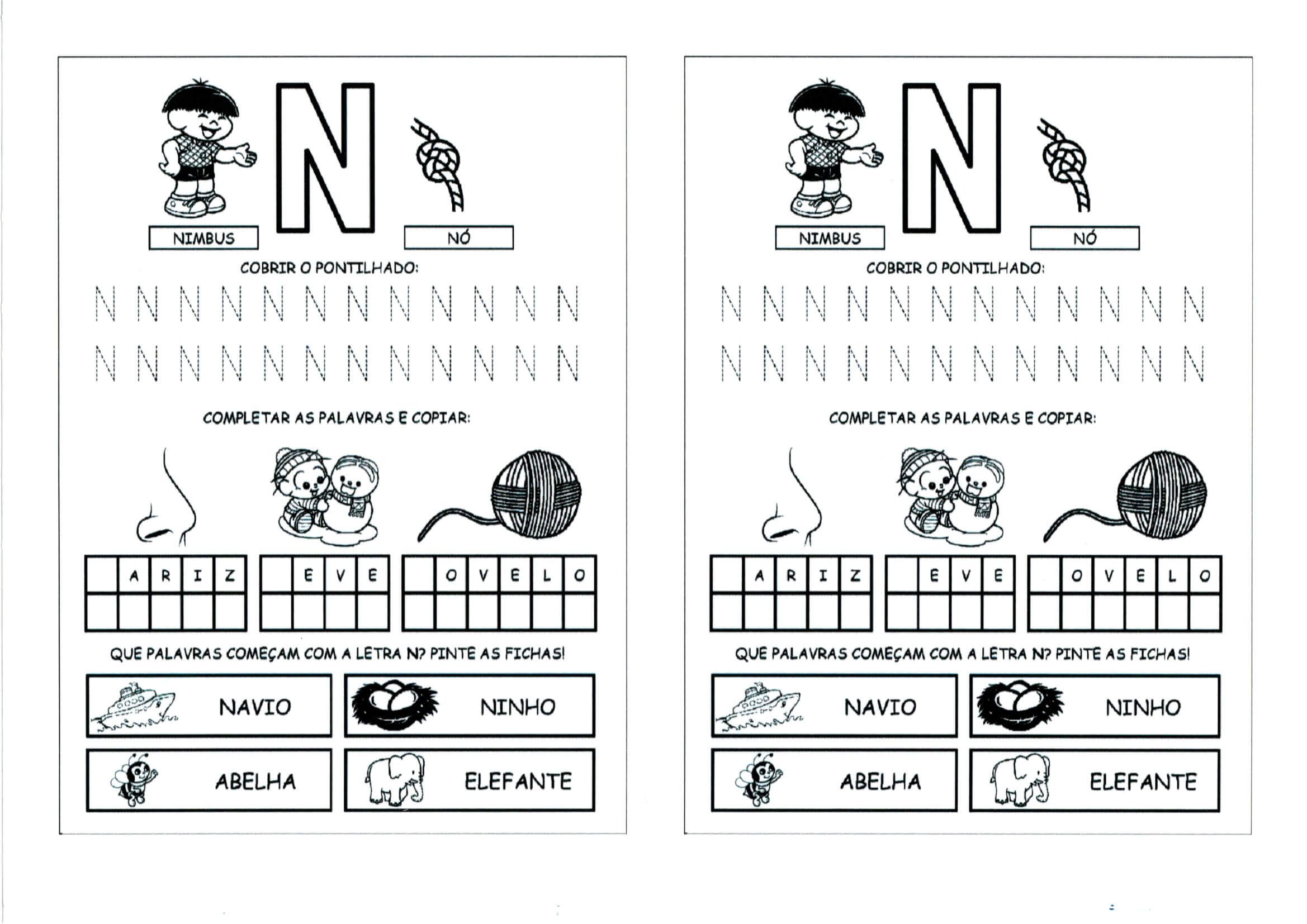 Alfabeto da Turma da Mônica com as Letras Iniciais e Pontilhadas-Letra N