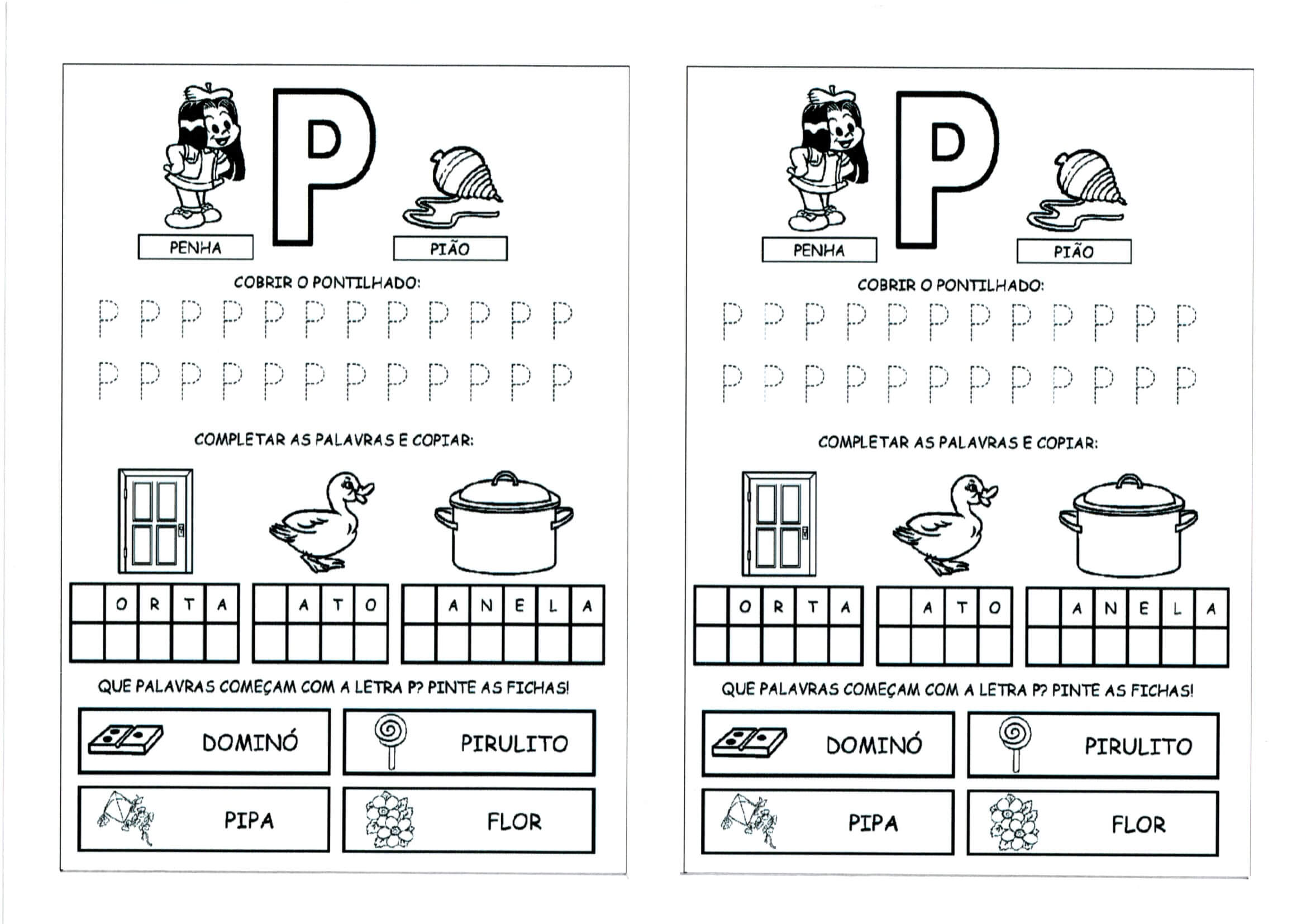 Alfabeto da Turma da Mônica com as Letras Iniciais e Pontilhadas-Letra P