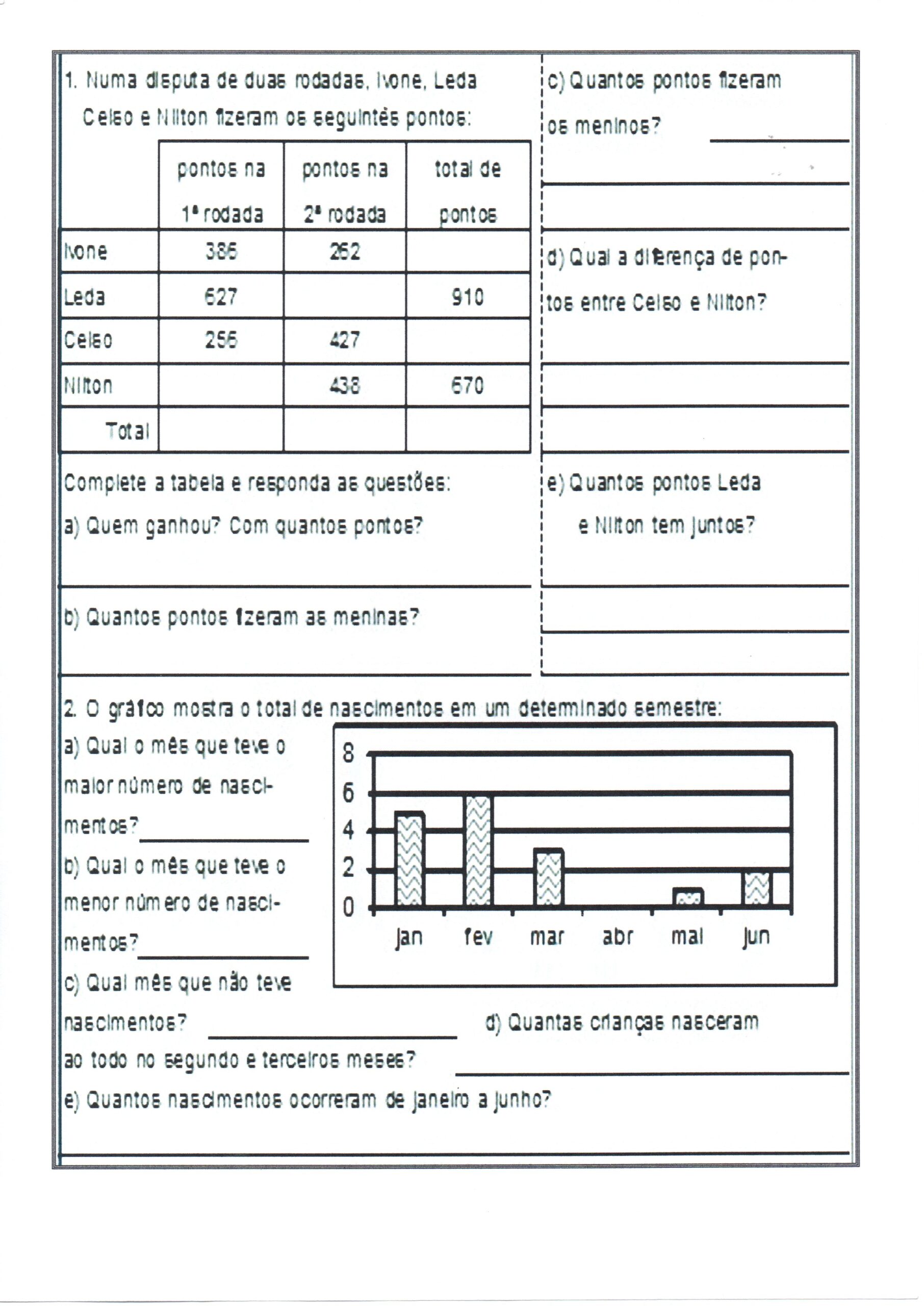 - Avaliação de Matemática Problemas Tabelas