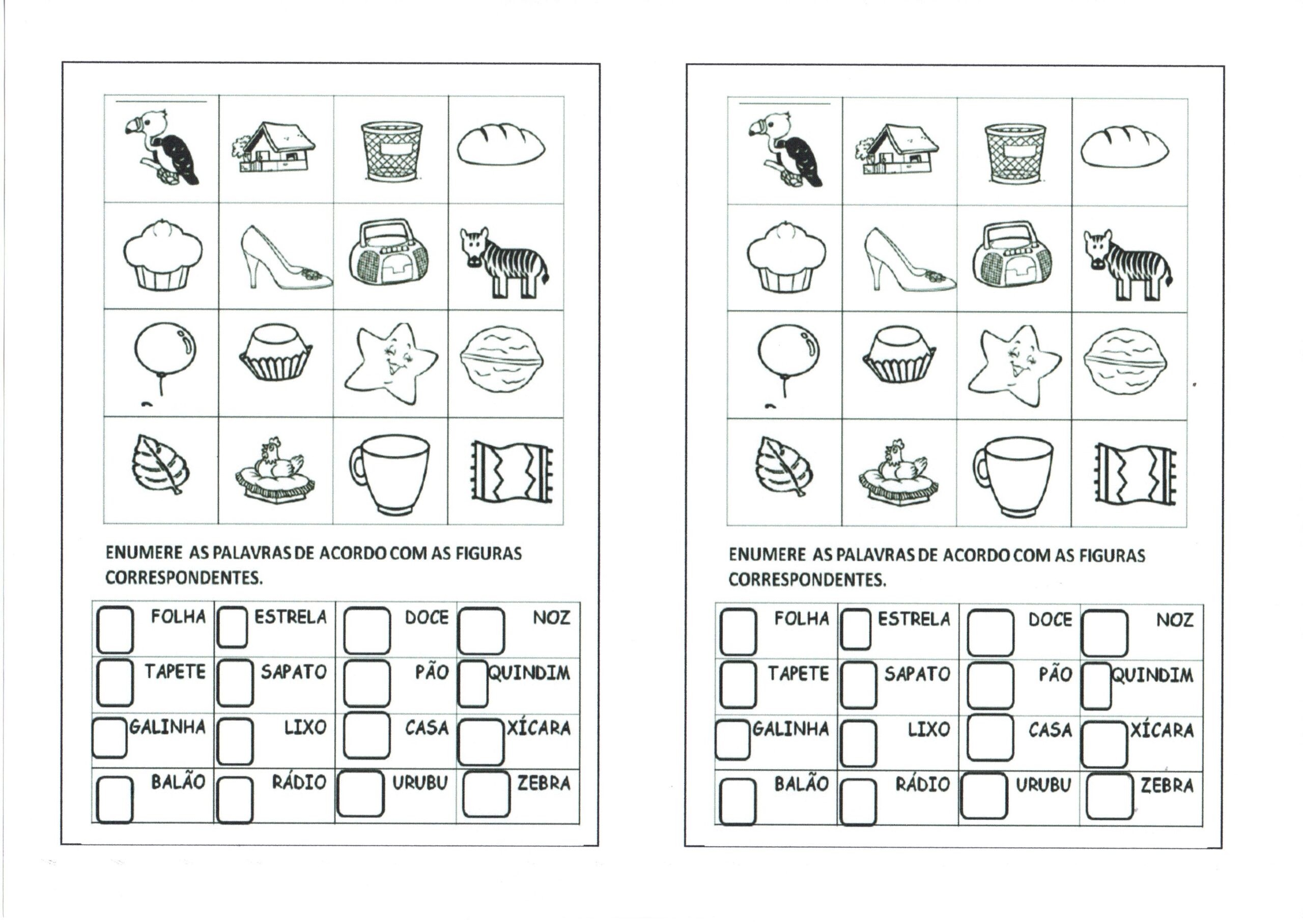Esta é uma atividade de Língua Portuguesa para que o aluno enumere as figuras e as palavras correspondentes.