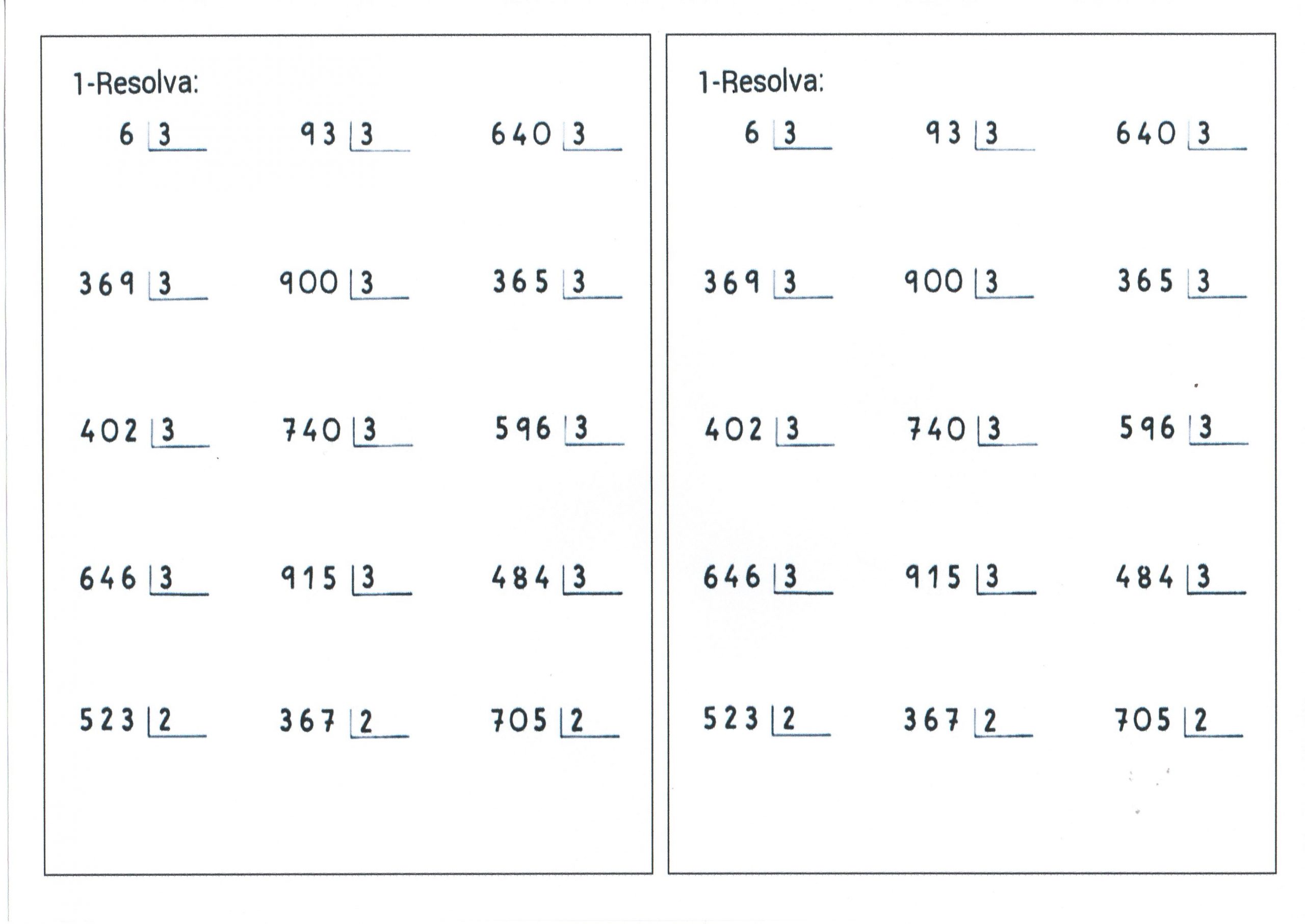 Esta é uma Atividade de matemática para praticar divisão com contas armadas e espaço para resolução.