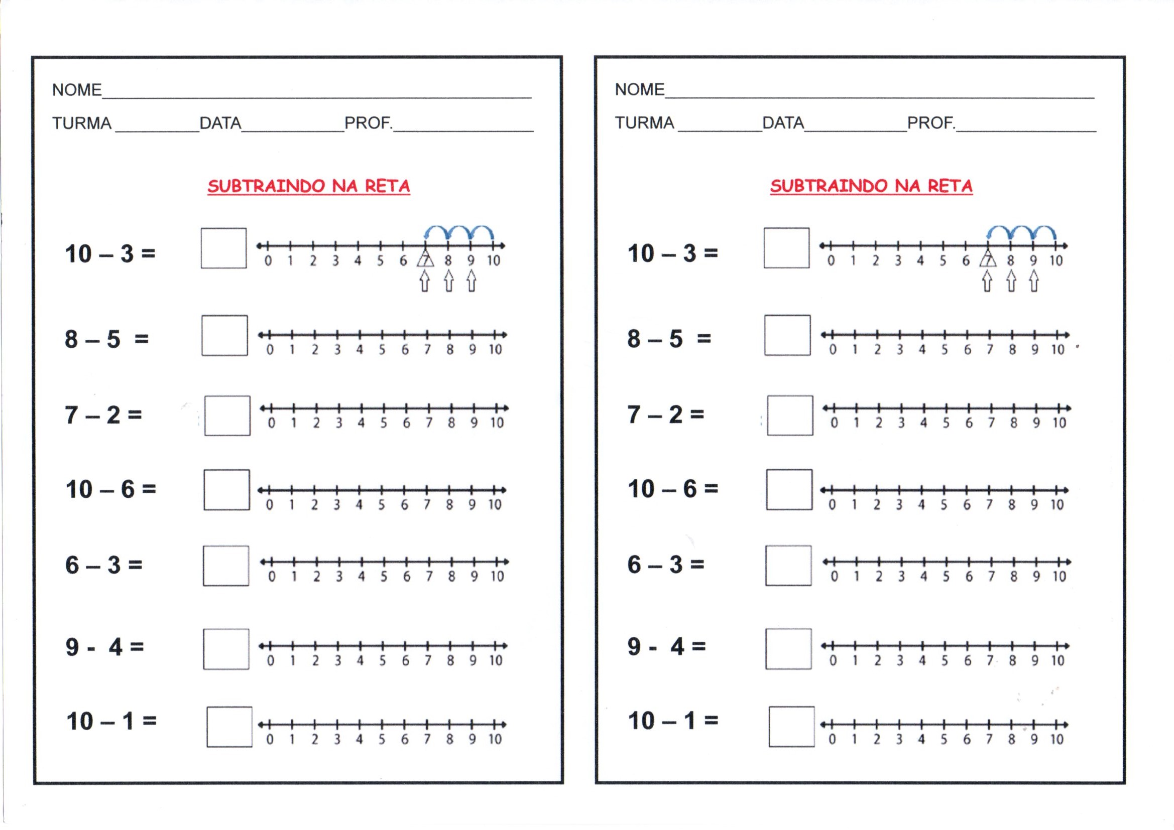 Atividade de Matemática-Subtraindo na reta é uma Atividade de Matemática para fazer a subtração dos números na reta dada.