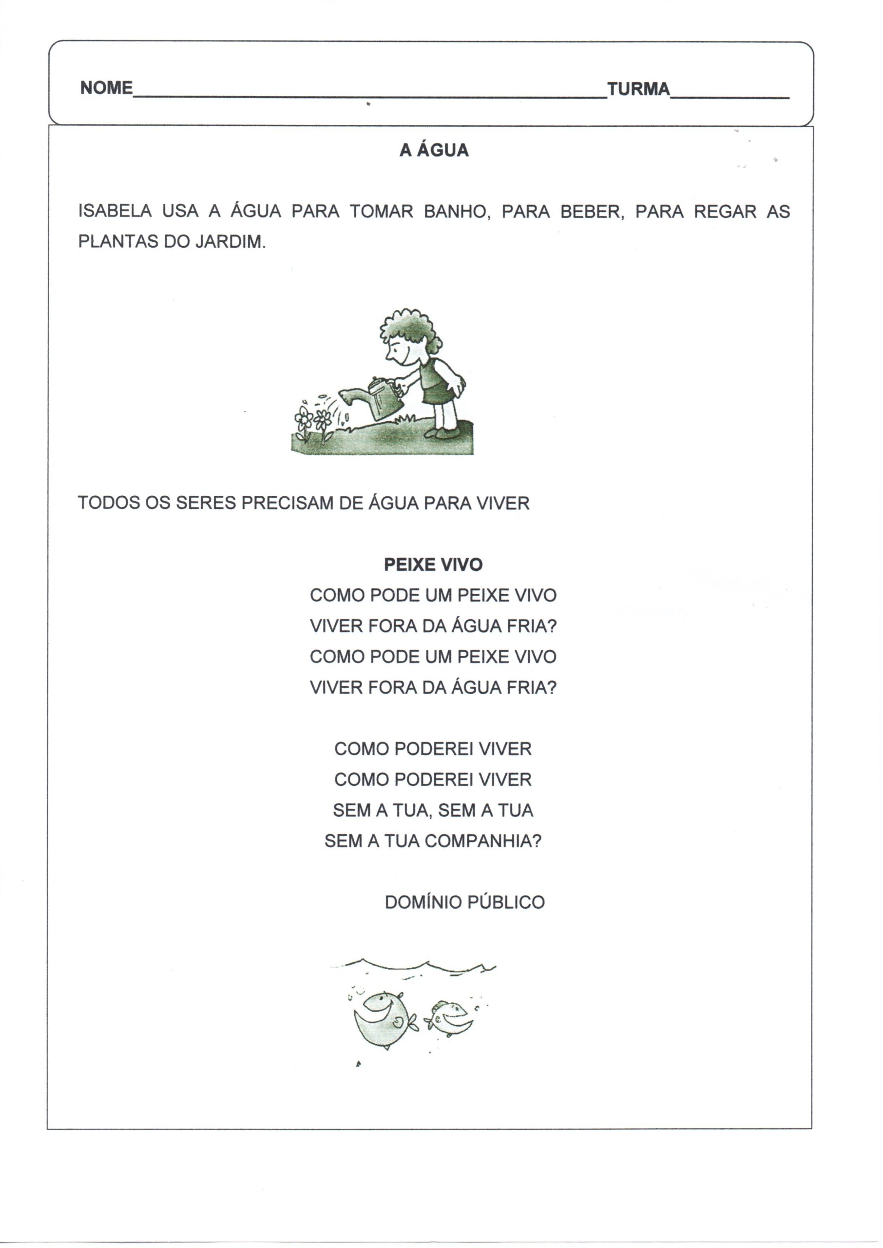 Atividade Dia Mundial da Água 1 é uma Atividade de Ciências com música, seres vivos e higiene pessoal.