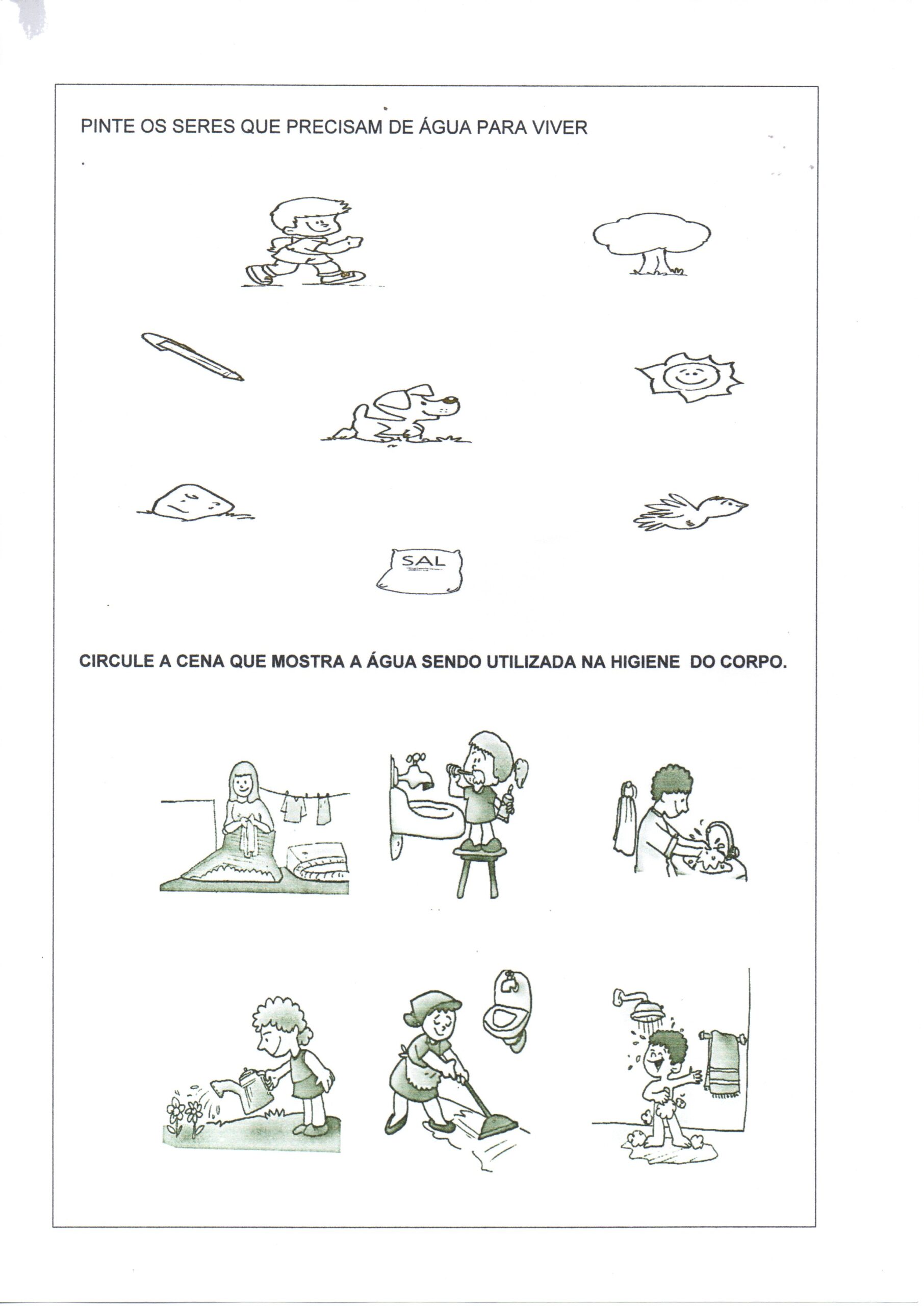 Atividade Dia Mundial da Água 2 é uma Atividade de Ciências com música, seres vivos e higiene pessoal.