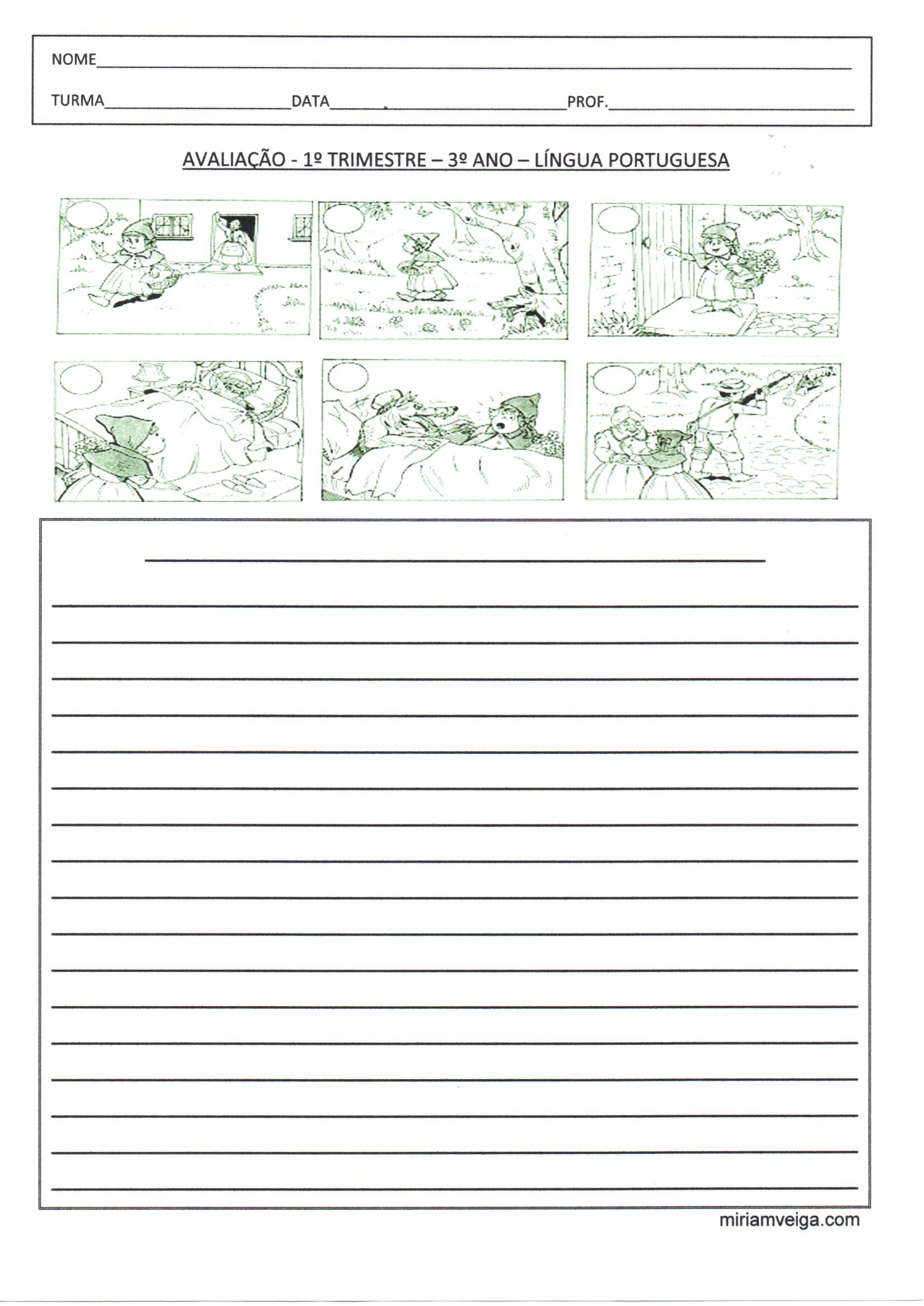 Avaliação 3 Ano Produção de texto a partir de quadros