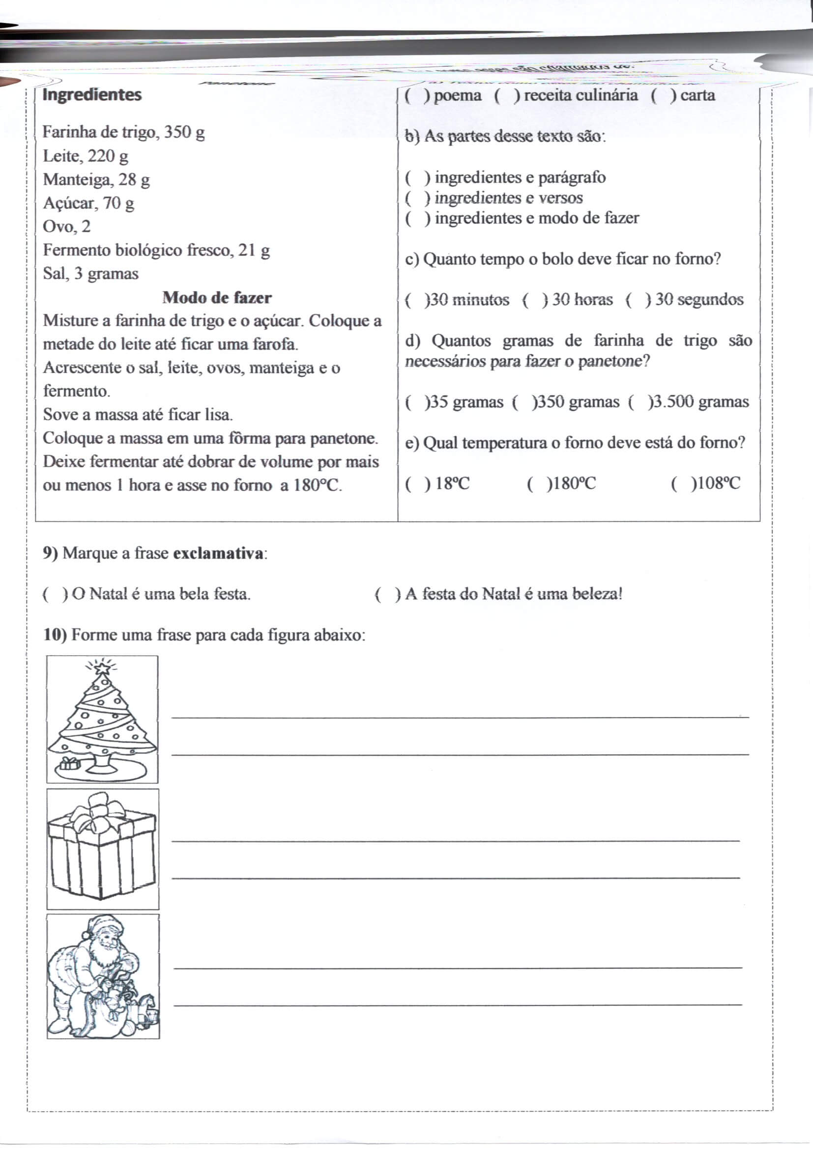 Esta atividade trabalha com gênero textual, interpretação de texto, receita, poema e formar frases.