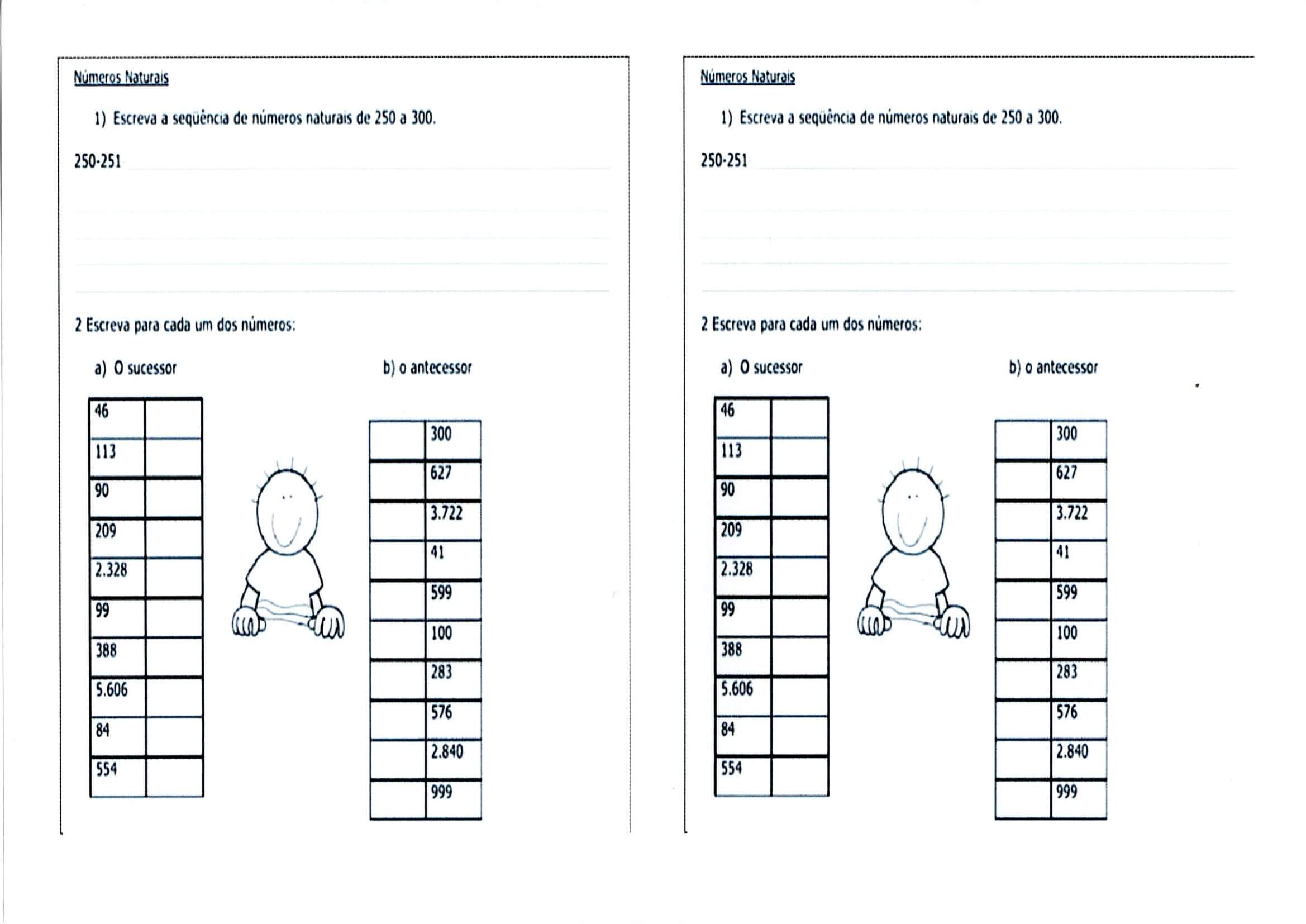 Antecessor e Sucessor-Números naturais. Atividade de matemática que trabalha com sequência de Números Naturais e Antecessor e Sucessor, pronta para imprimir e usar.