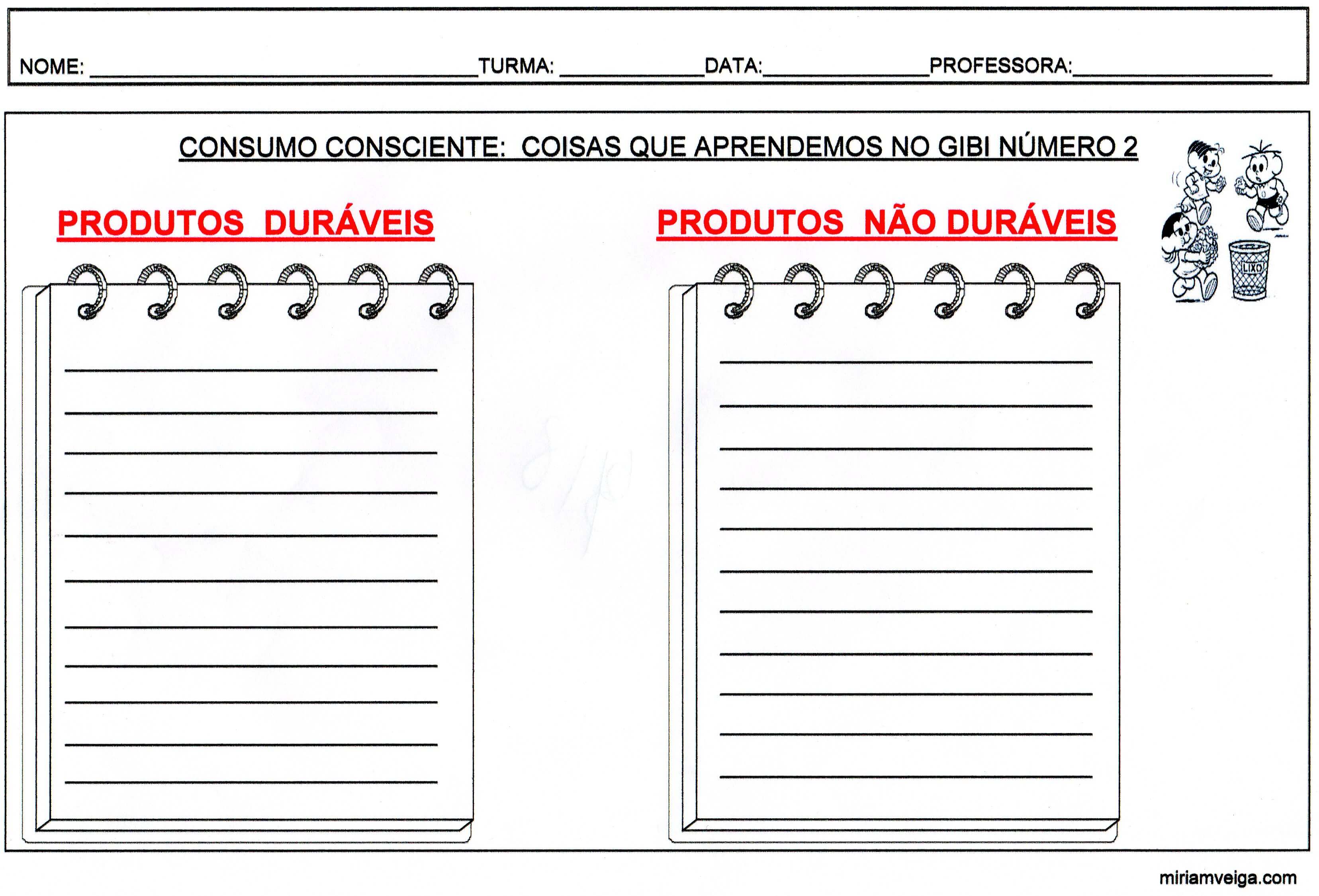 Consumo Consciente–Gibi 2. Esta atividade usa o Gibi 2 e permite continuar o trabalho sobre o cupom fiscal, o Consumo consciente, valores, impostos, descarte no meio ambiente, etc. Esta atividade tem duas folhas.