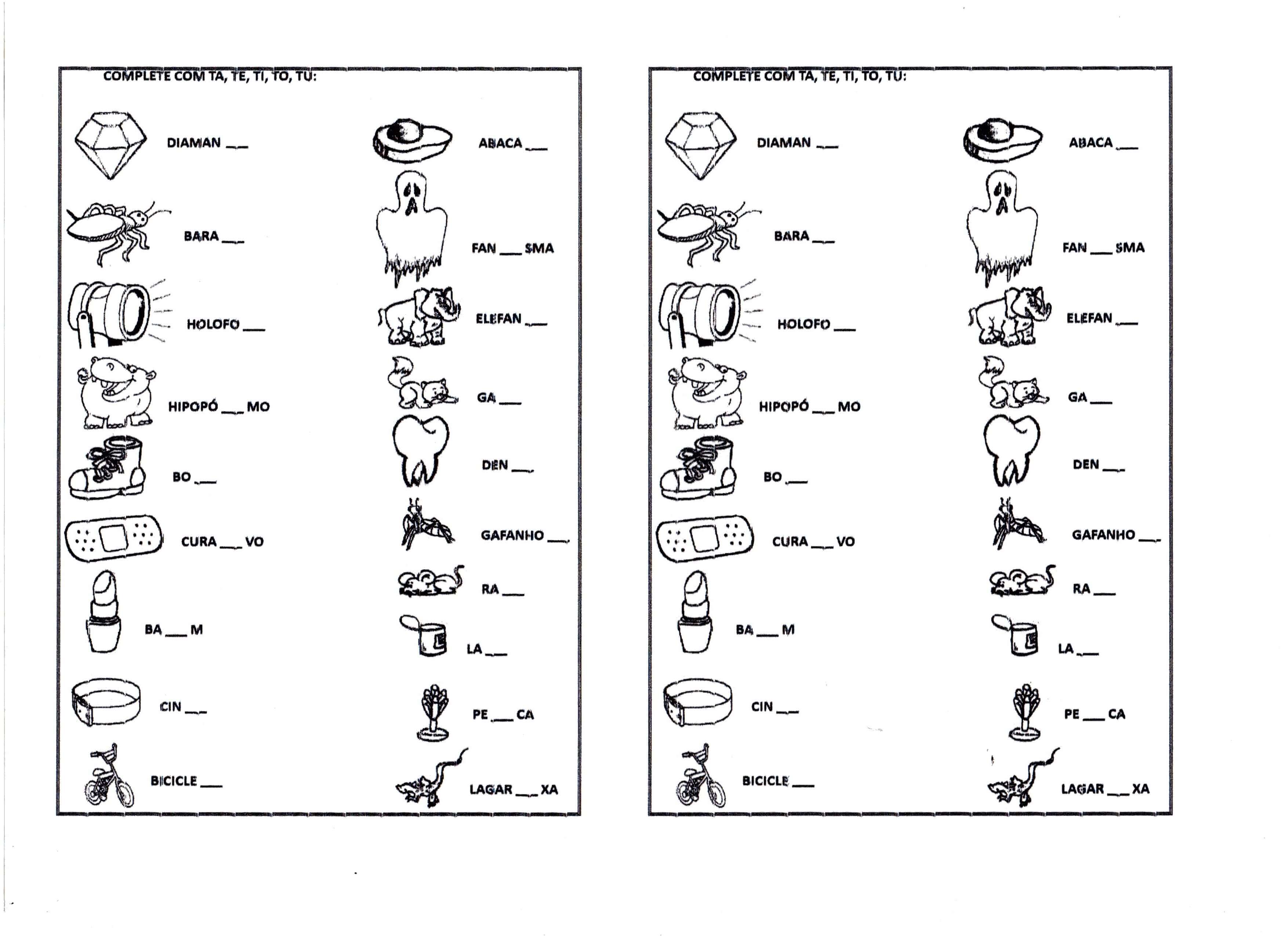 Complete com TA TE TI TO-Figuras e palavras para completarLeia mais »