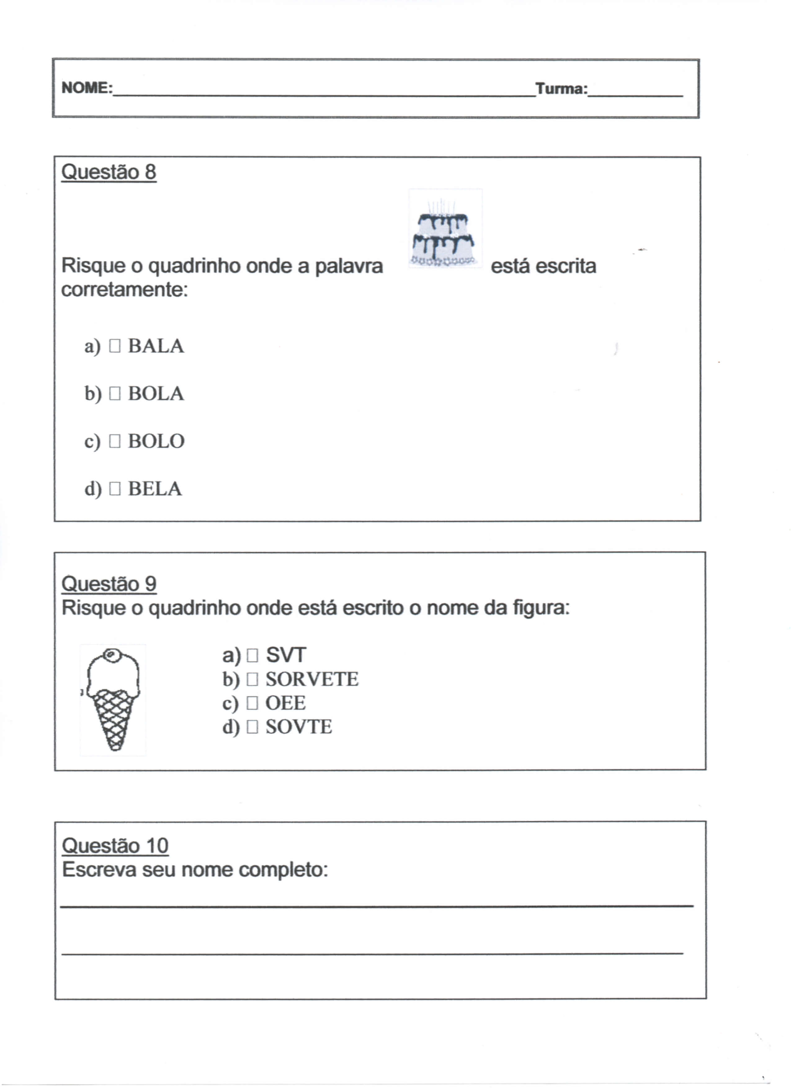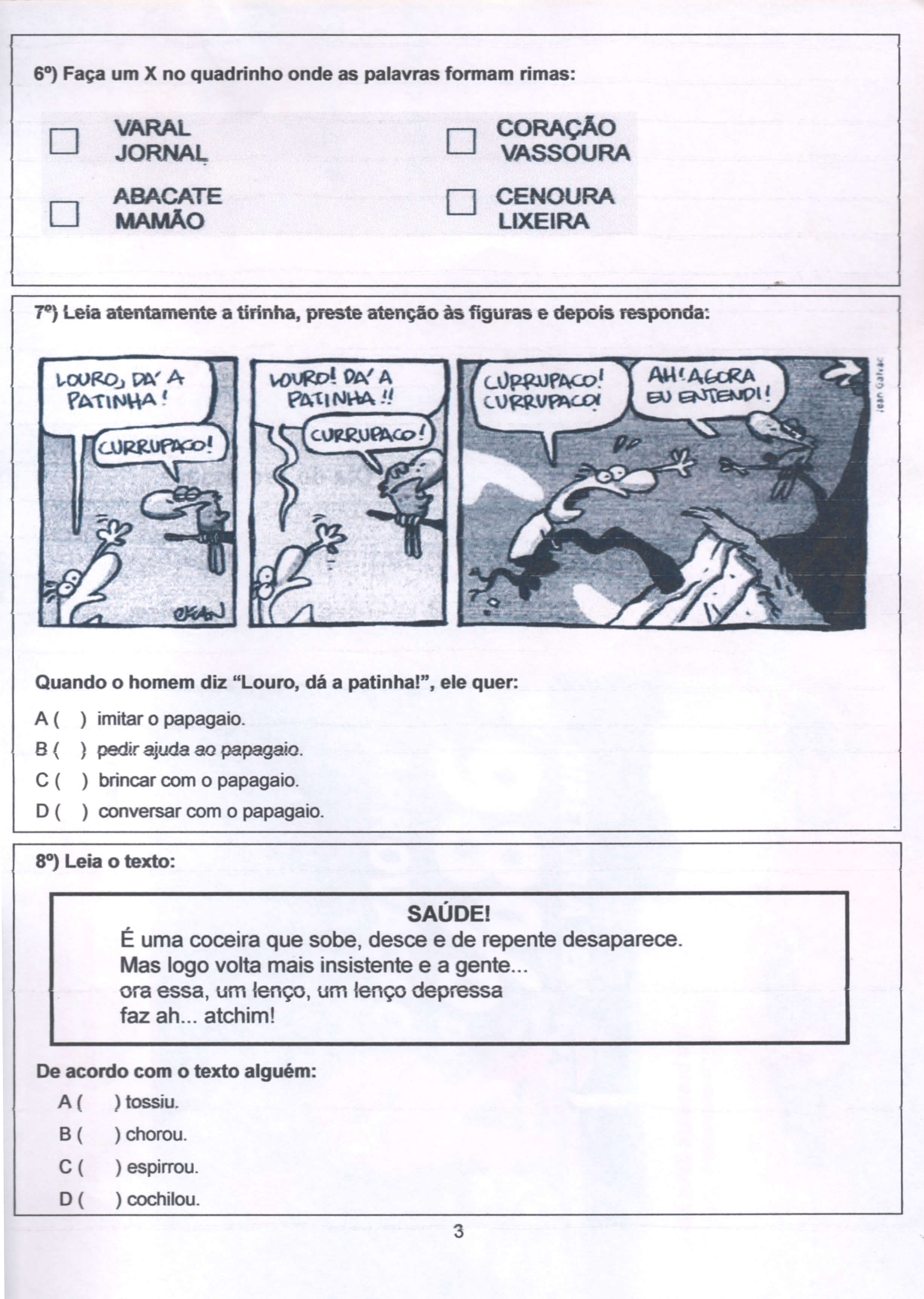 Avaliação Diagnóstica 2º Ano – Português Parte 3. Esta atividade permite avaliar alunos de 2º Ano do Ensino Fundamental e possui 9 páginas, que serão distribuídas em 3 posts separadamente.