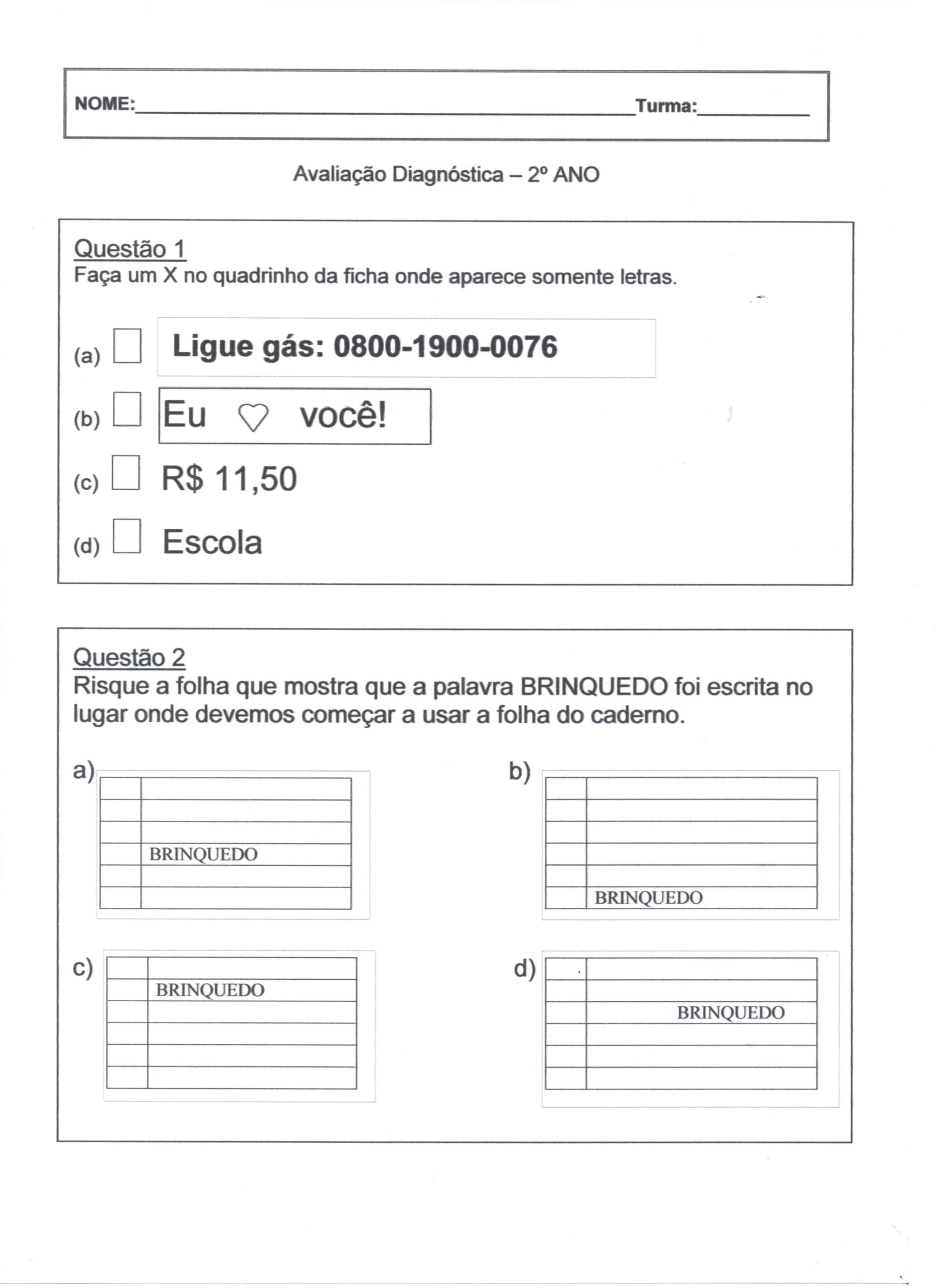 Avaliação Diagnóstica 2º Ano – Português Parte 1. Esta atividade permite avaliar alunos de 2º Ano do Ensino Fundamental e possui 9 páginas, que serão distribuídas em 3 posts separadamente.