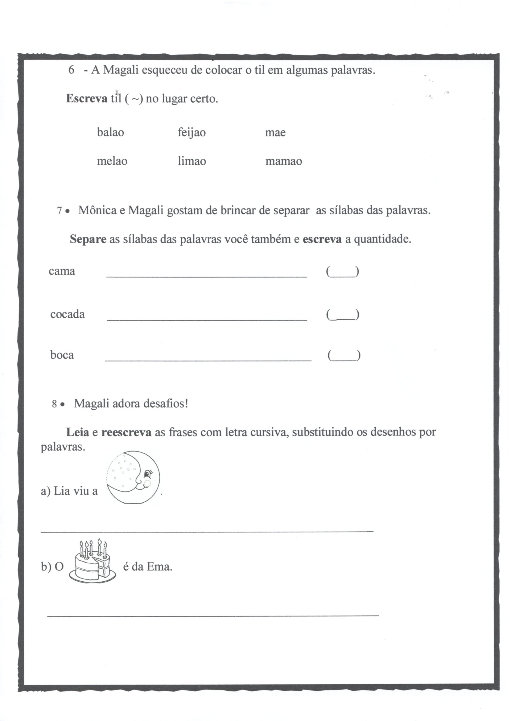 O aluno poderá pintar as ilustrações após terminar os exercícios.