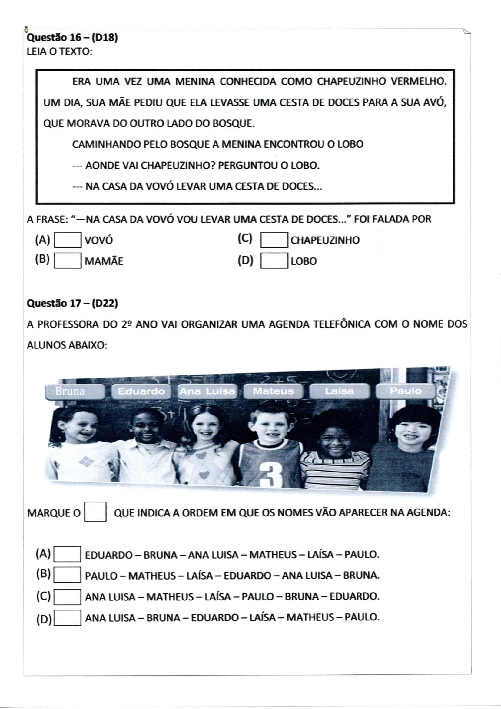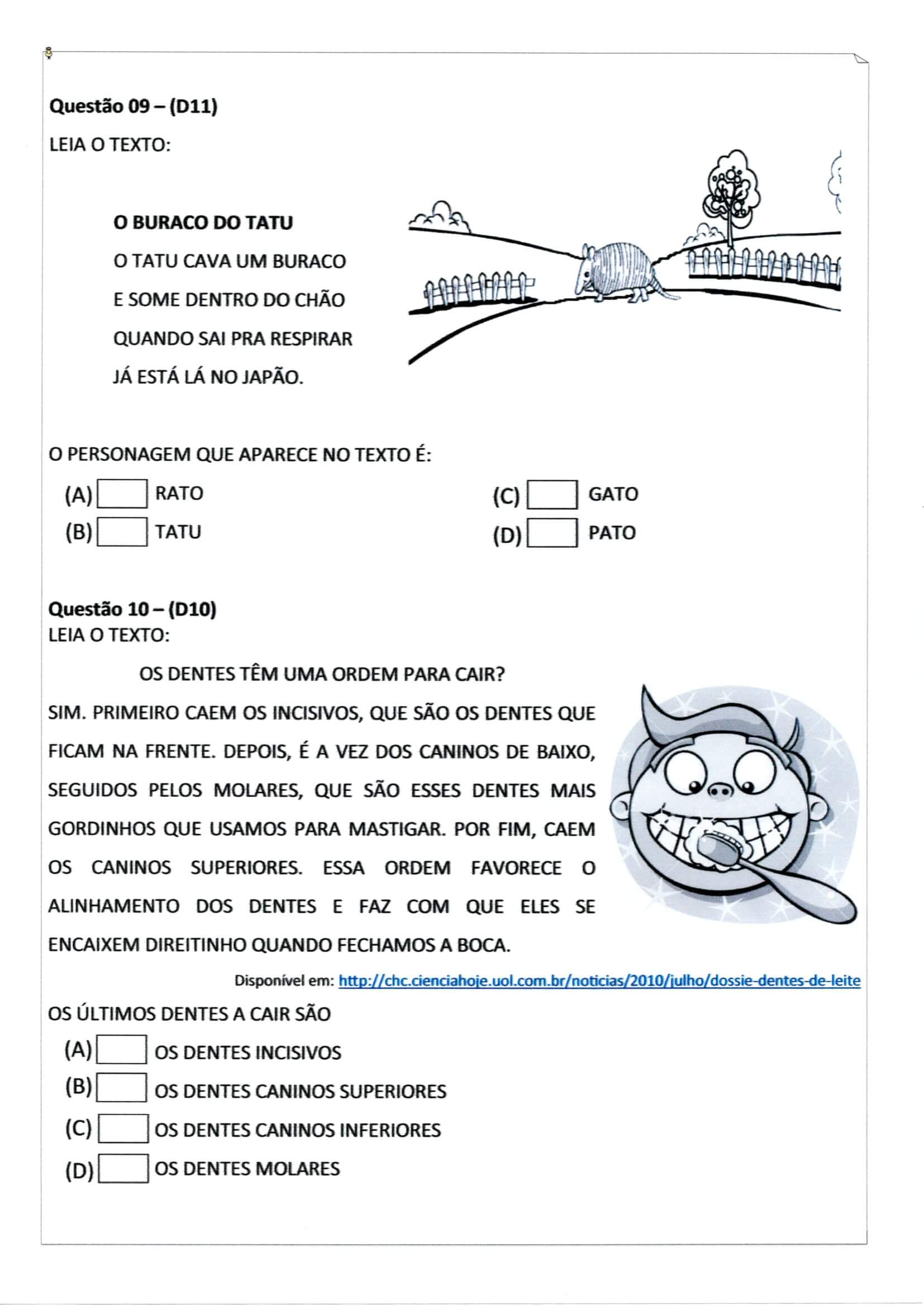Avaliação Diagnóstica/Inicial de alunos de 2º Ano do Ensino Fundamental-Folha 7