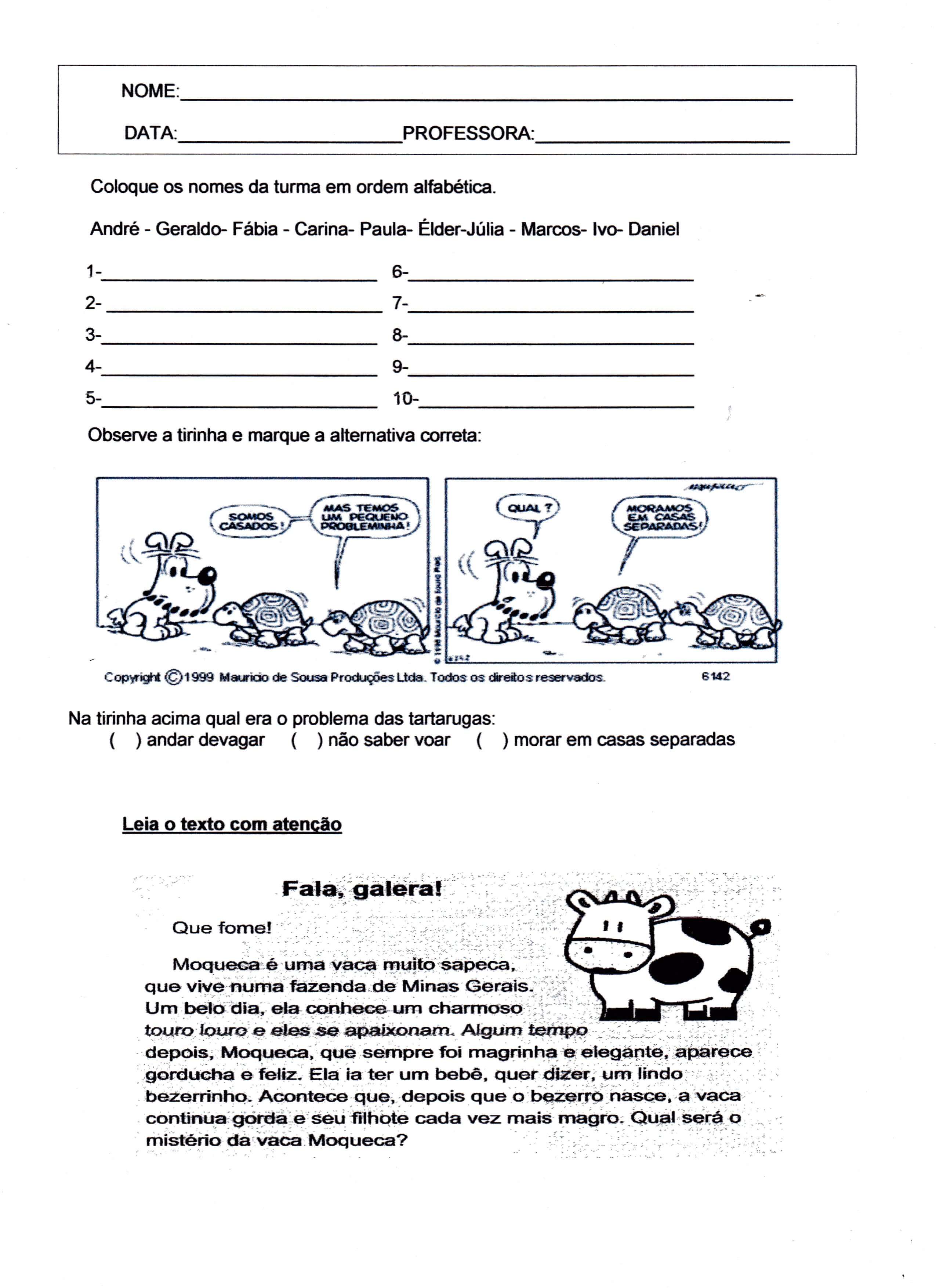 Avaliação de Português Ensino Fundamental – Parte 03 – Interpretação de Texto e Geografia. Esta atividade tem três partes, essa é a parte 03, que tem 2 folhas.