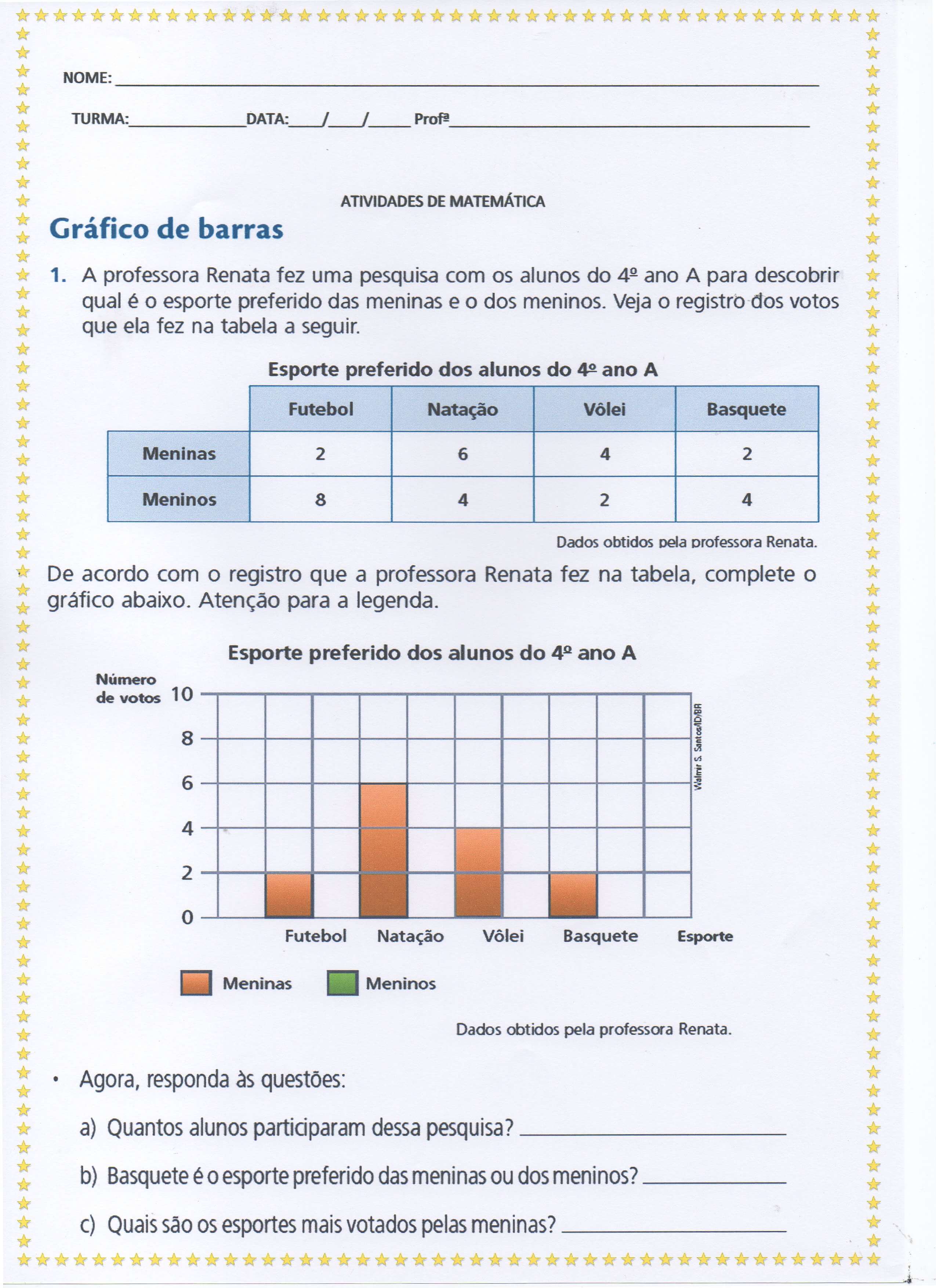 Atividade com gráfico – Parte 2. Atividade de Matemática com gráfico de barras.