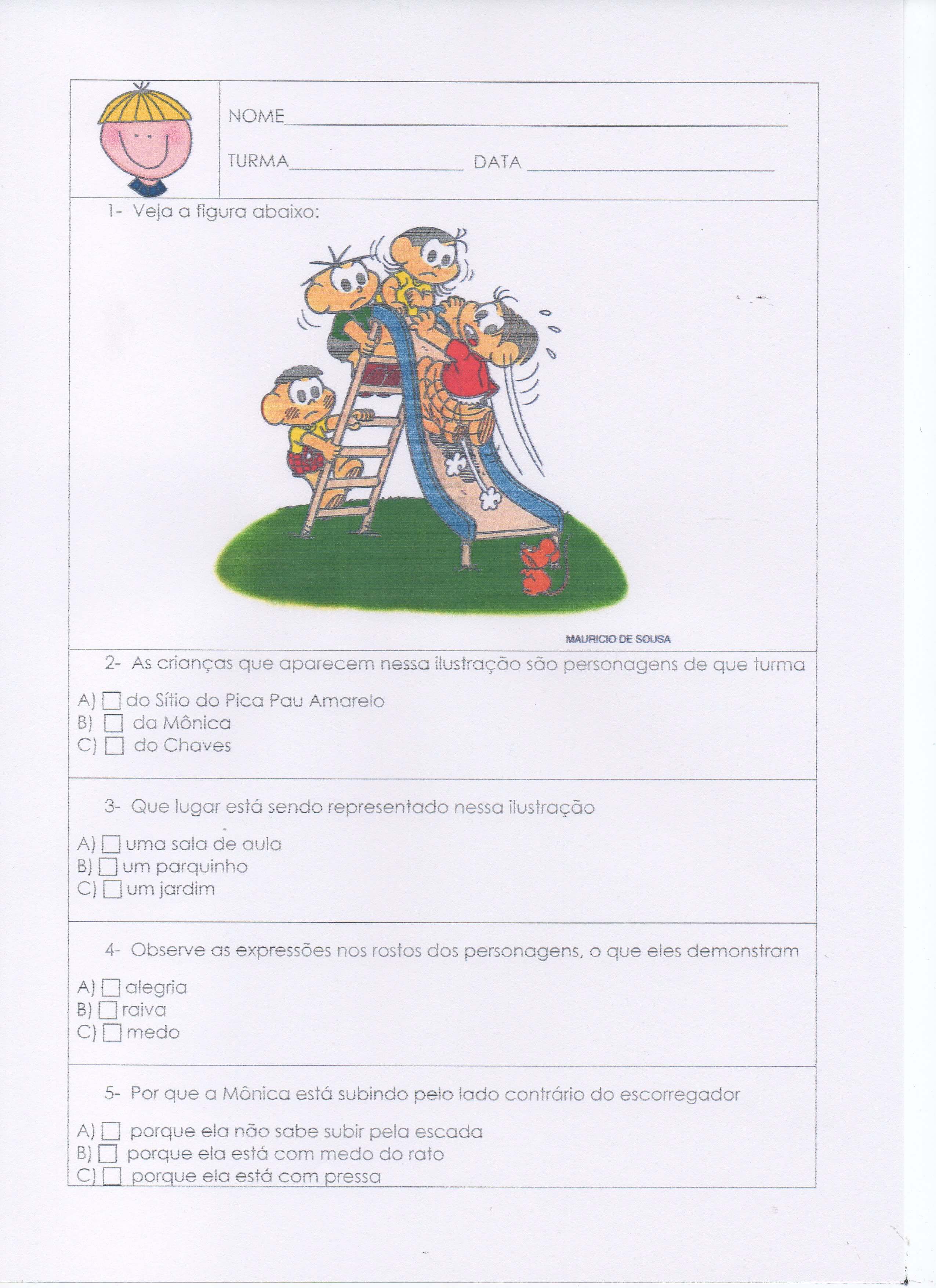 Avaliação de Língua Portuguesa – Turma Mônica – Parte 1. Essa atividade envolve 3 partes.