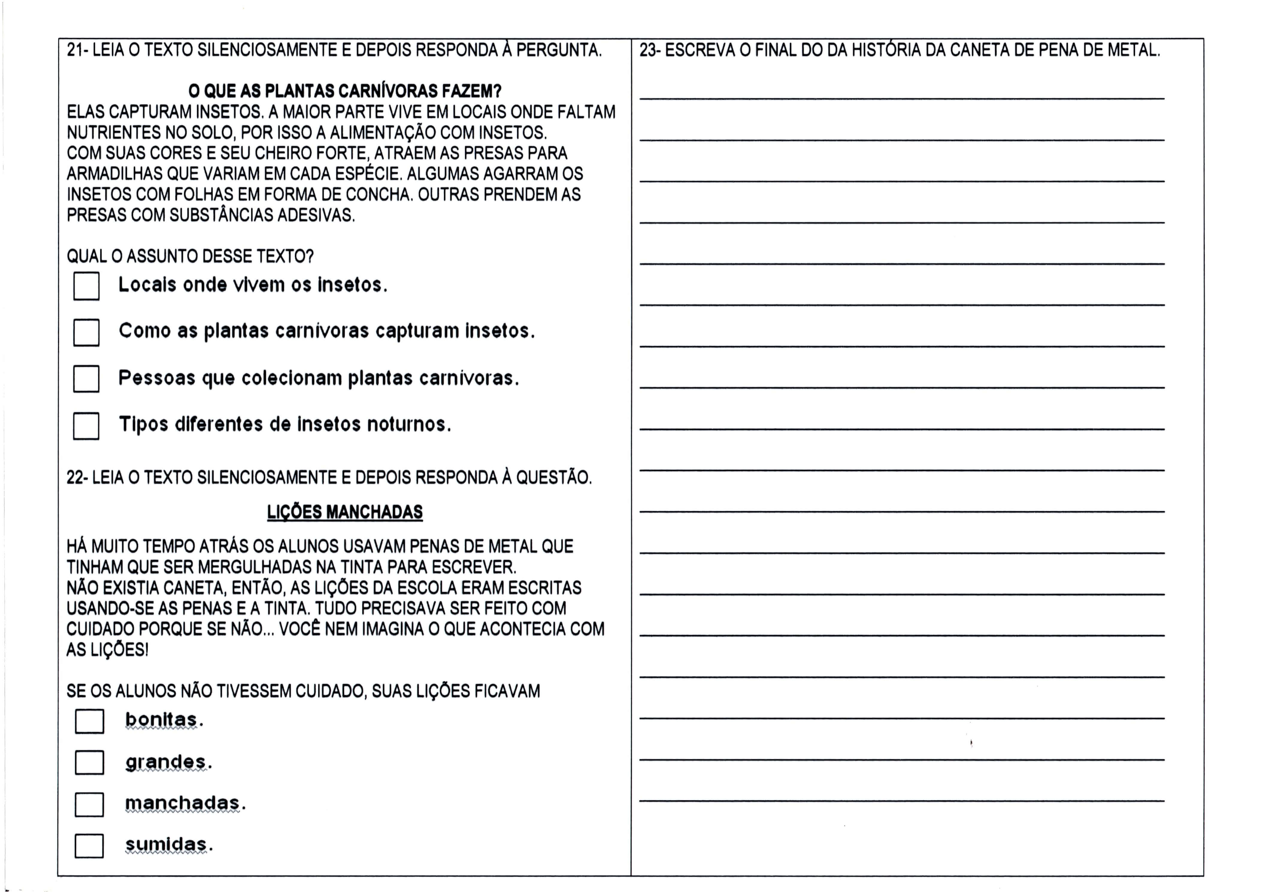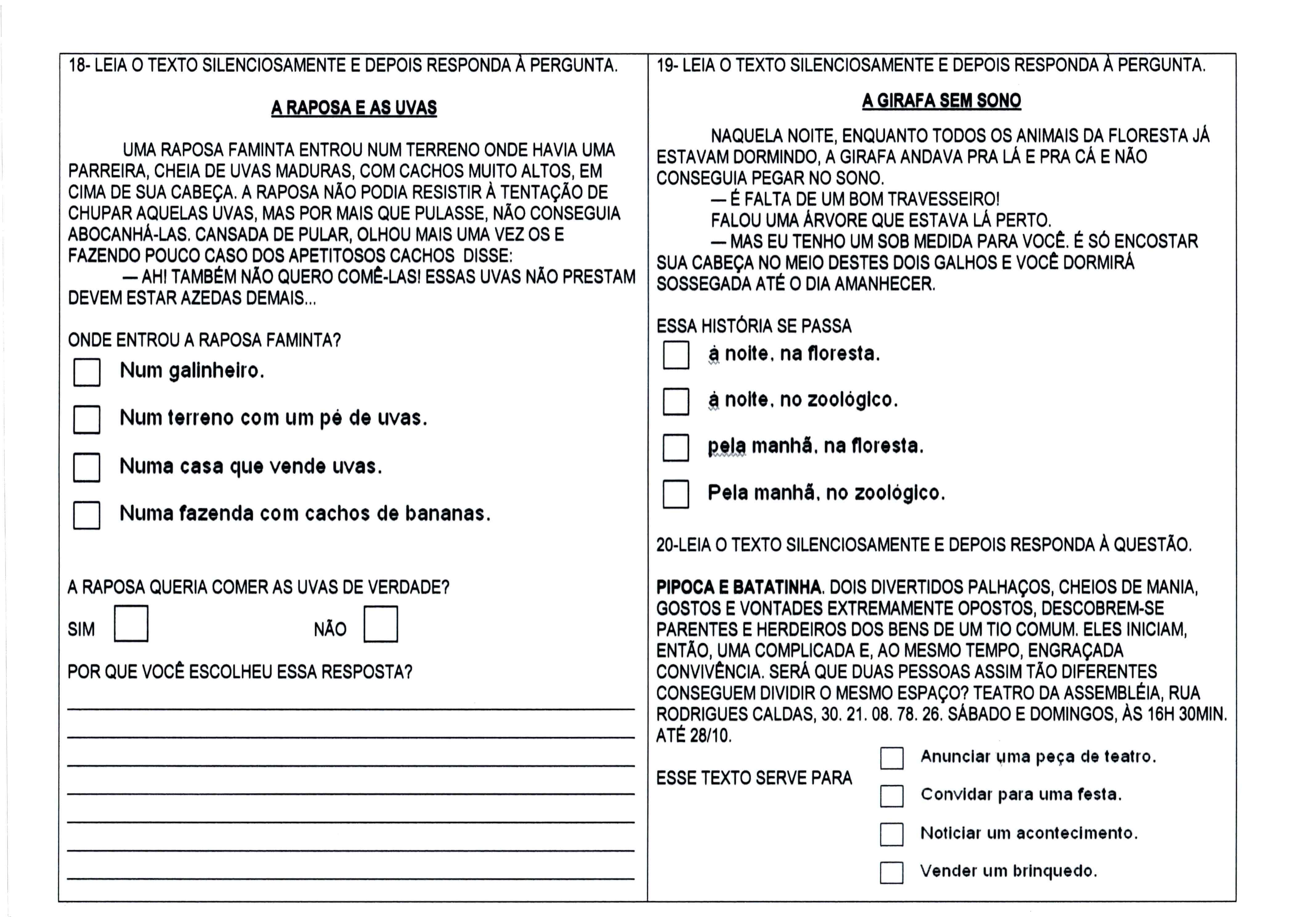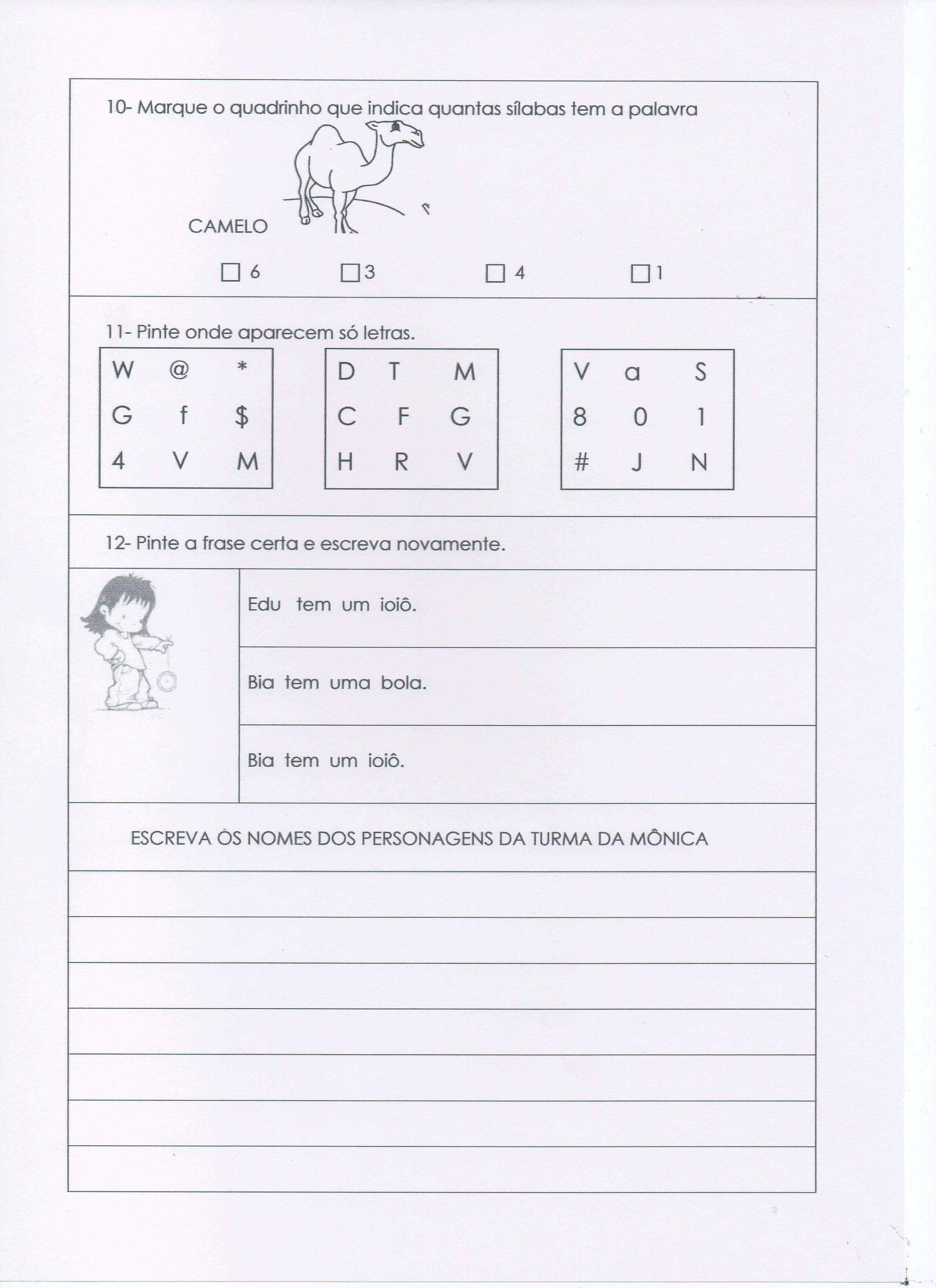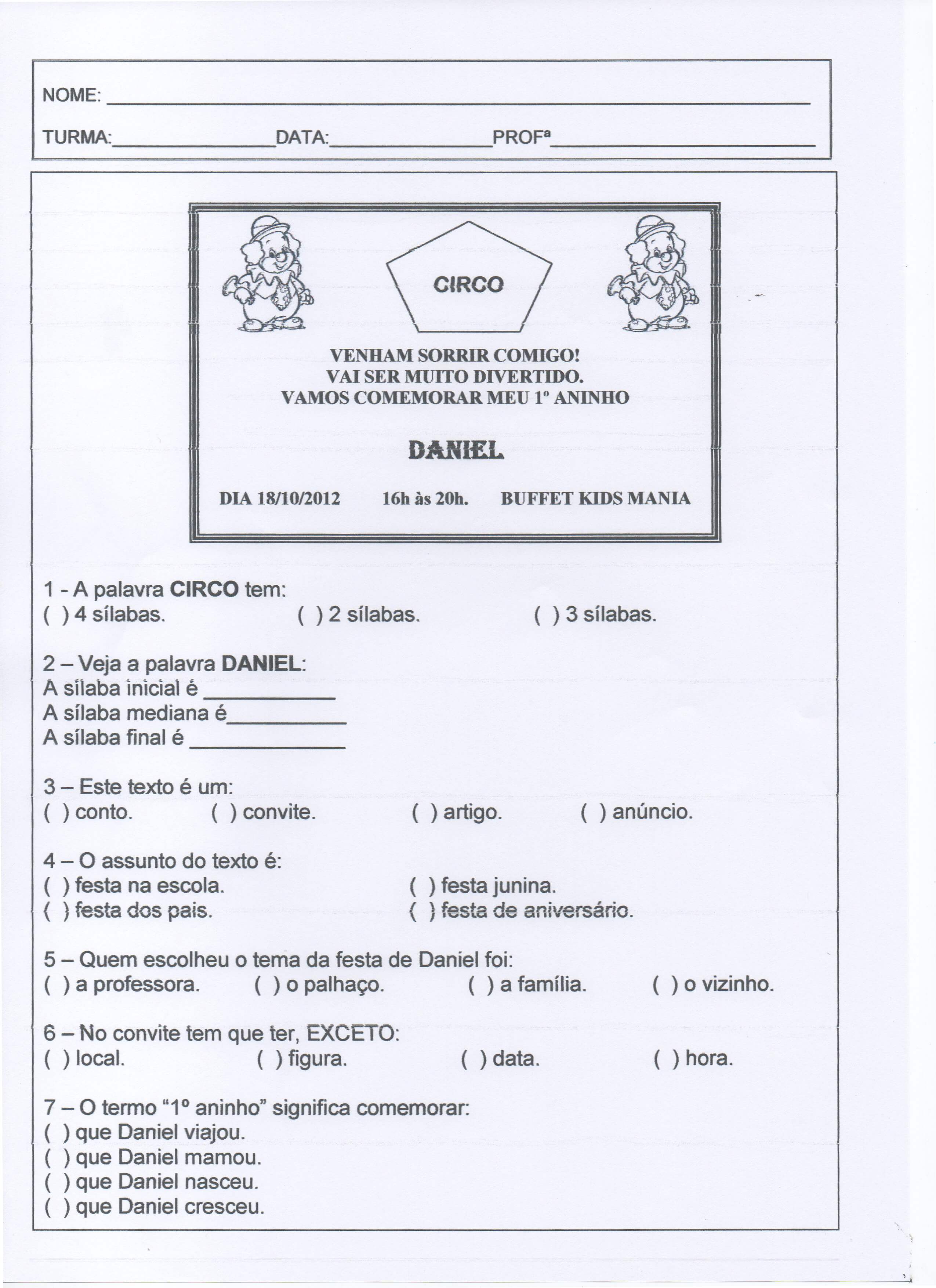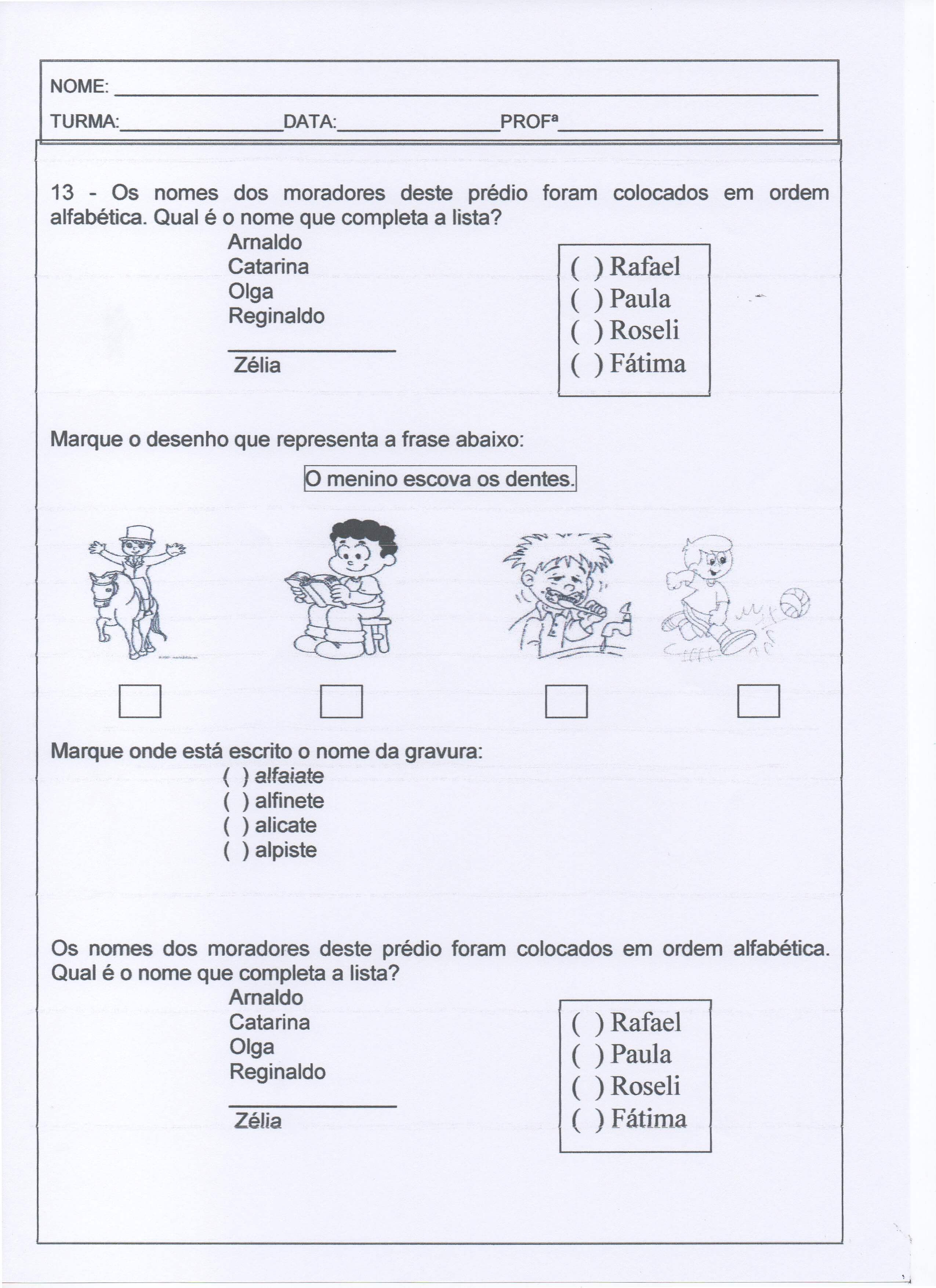 Avaliação de 1º ANO de Ensino Fundamental – Parte 3 de 3.