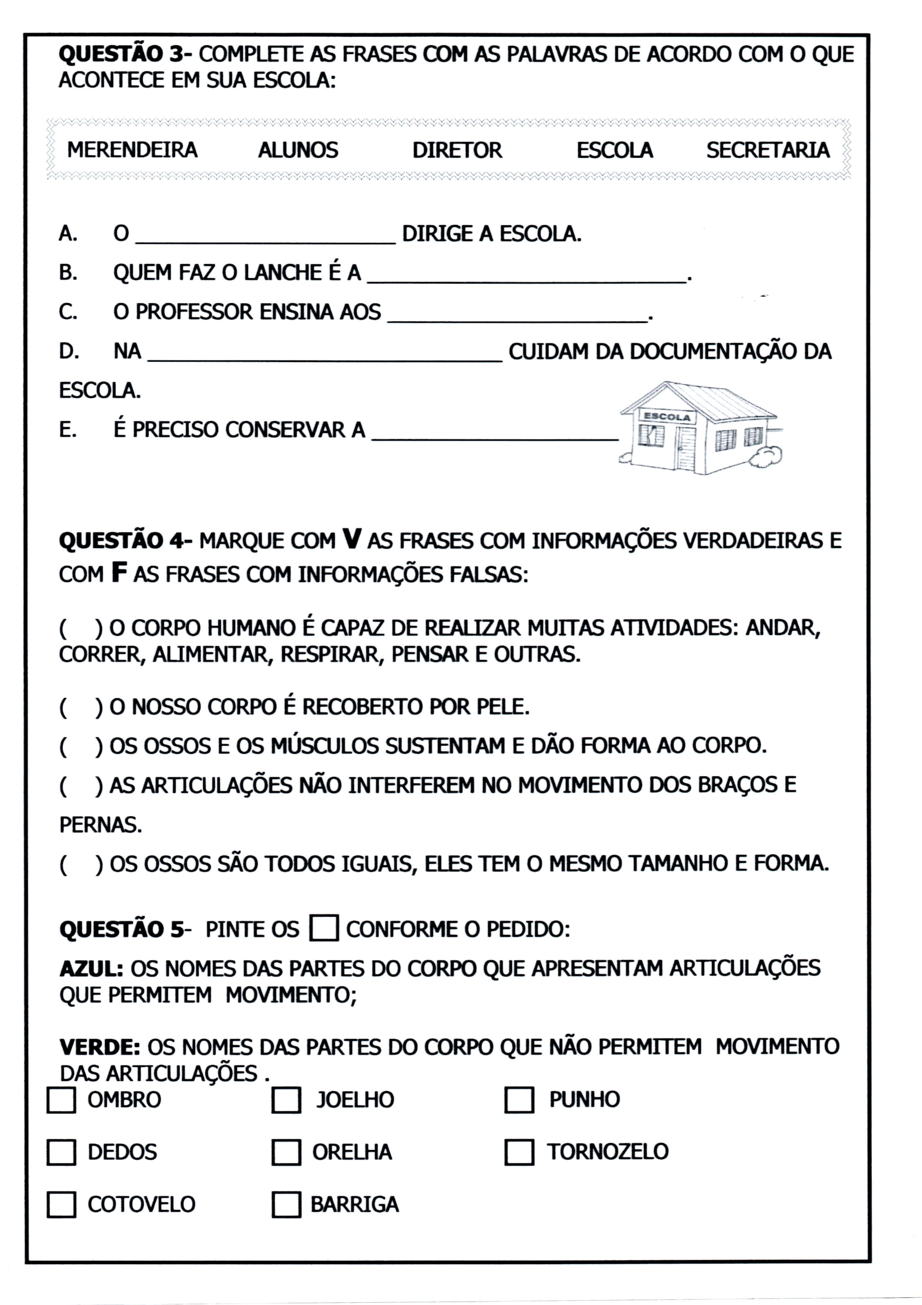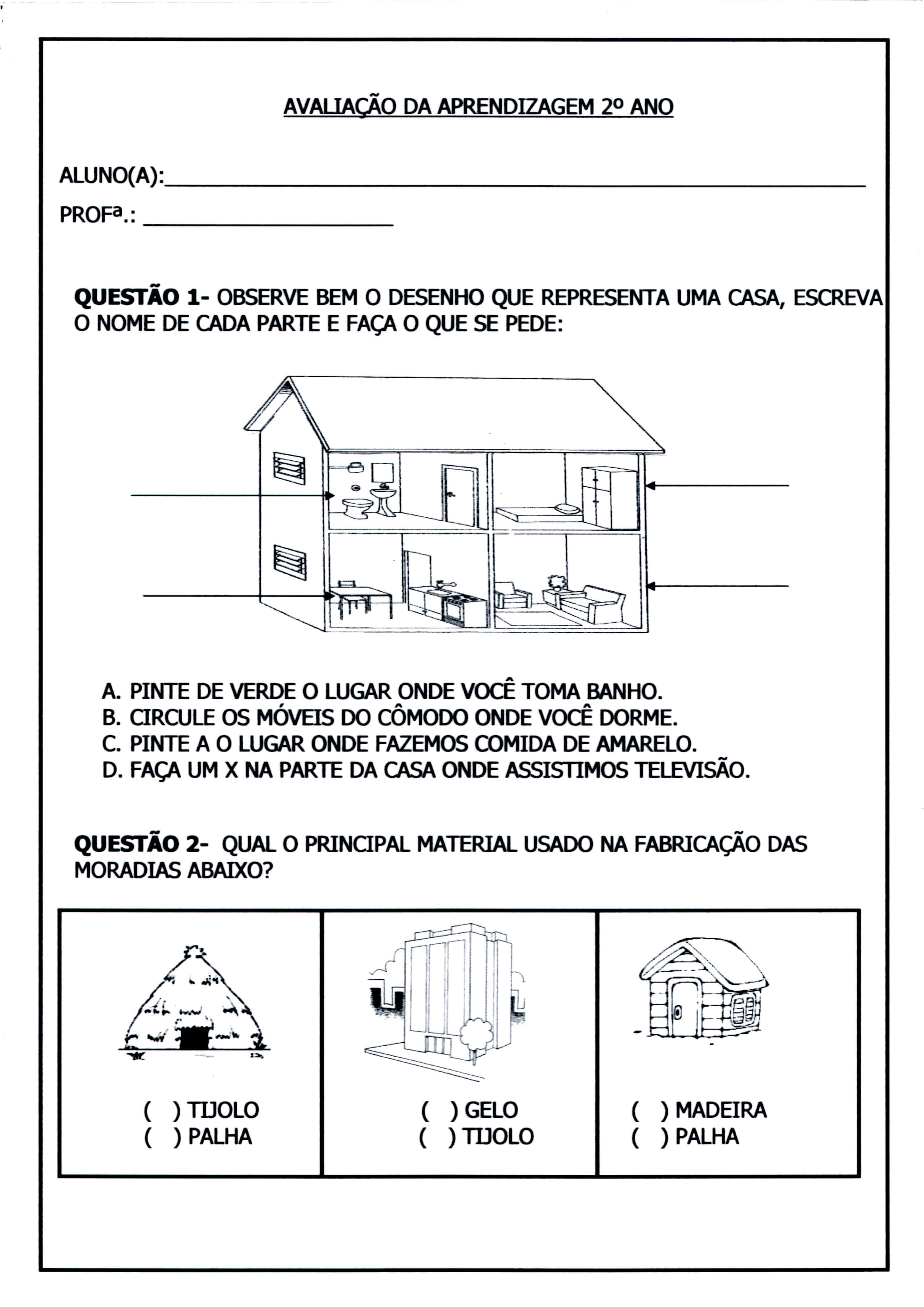 Avaliação de 1º ANO de Ensino Fundamental – Parte 2 de 3.