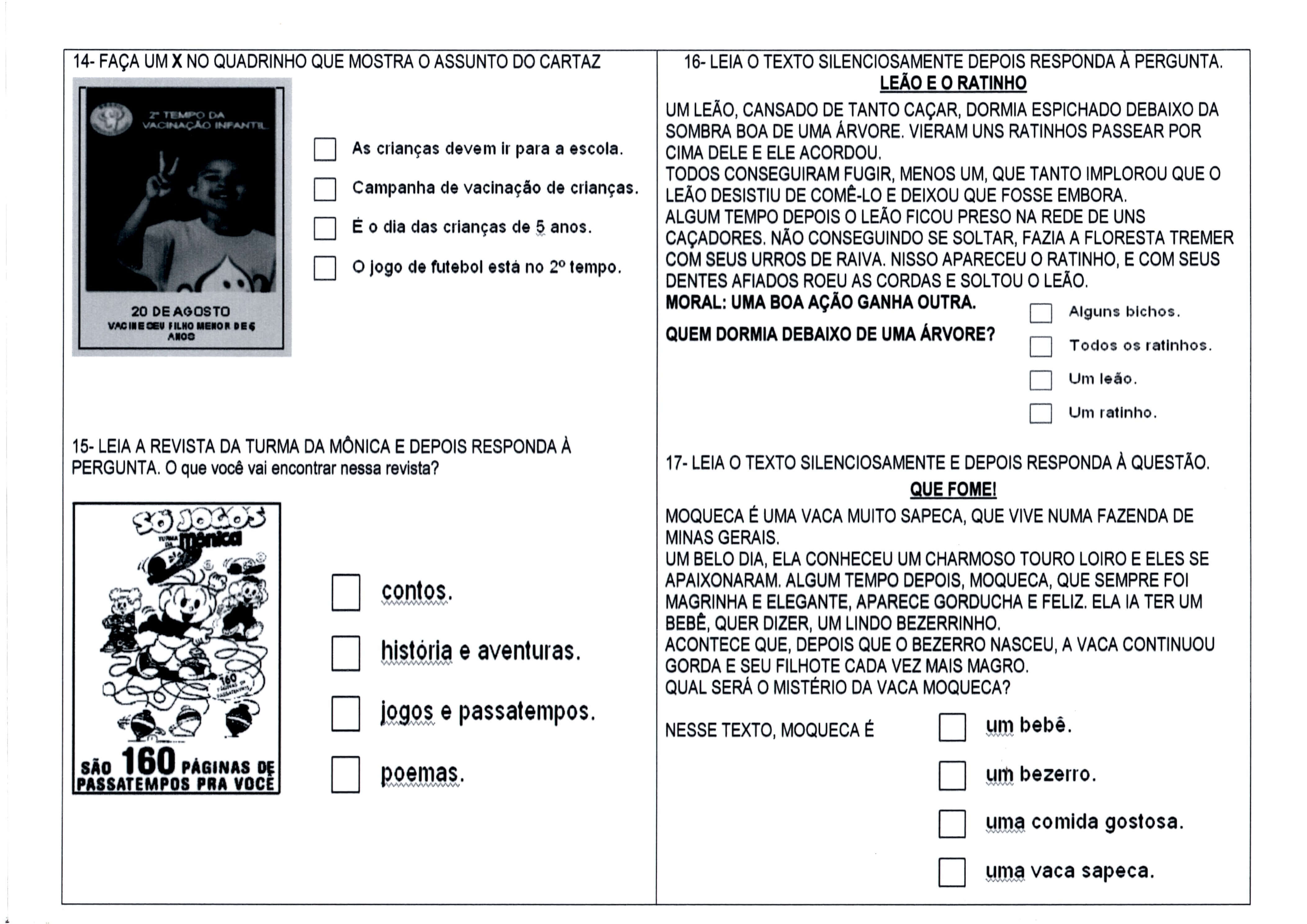 Simulado Provinha Brasil-Parte 4. Atividade que permite simular a provinha Brasil que o professor mantenha objetividade e possa aferir o conhecimento dos alunos e possui 5 partes.