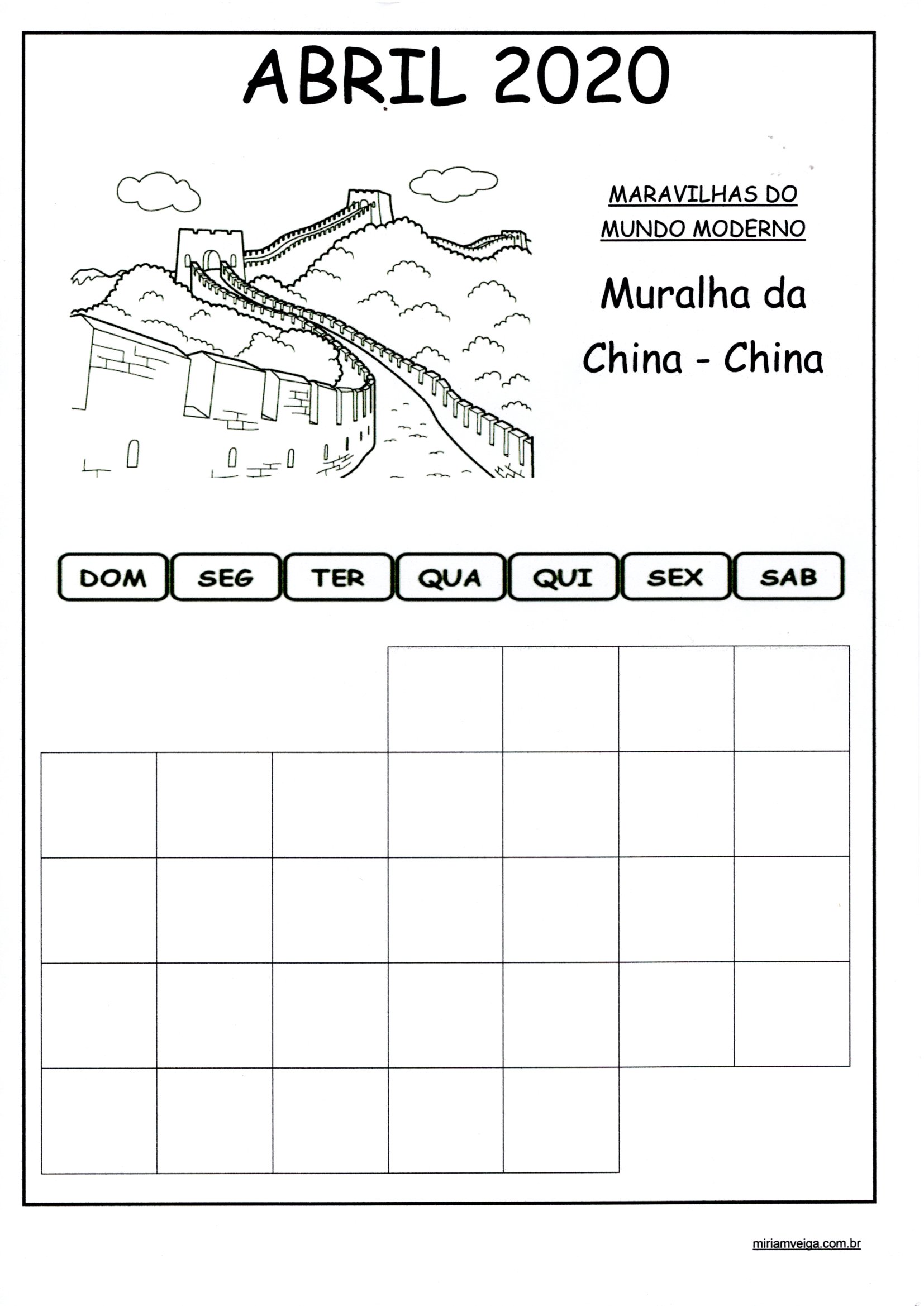 Calendário 2020 Abril-Parede e Aluno faz parte dos Calendários de 2020 com o Tema Maravilhas do mundo Moderno: A Muralha da China.