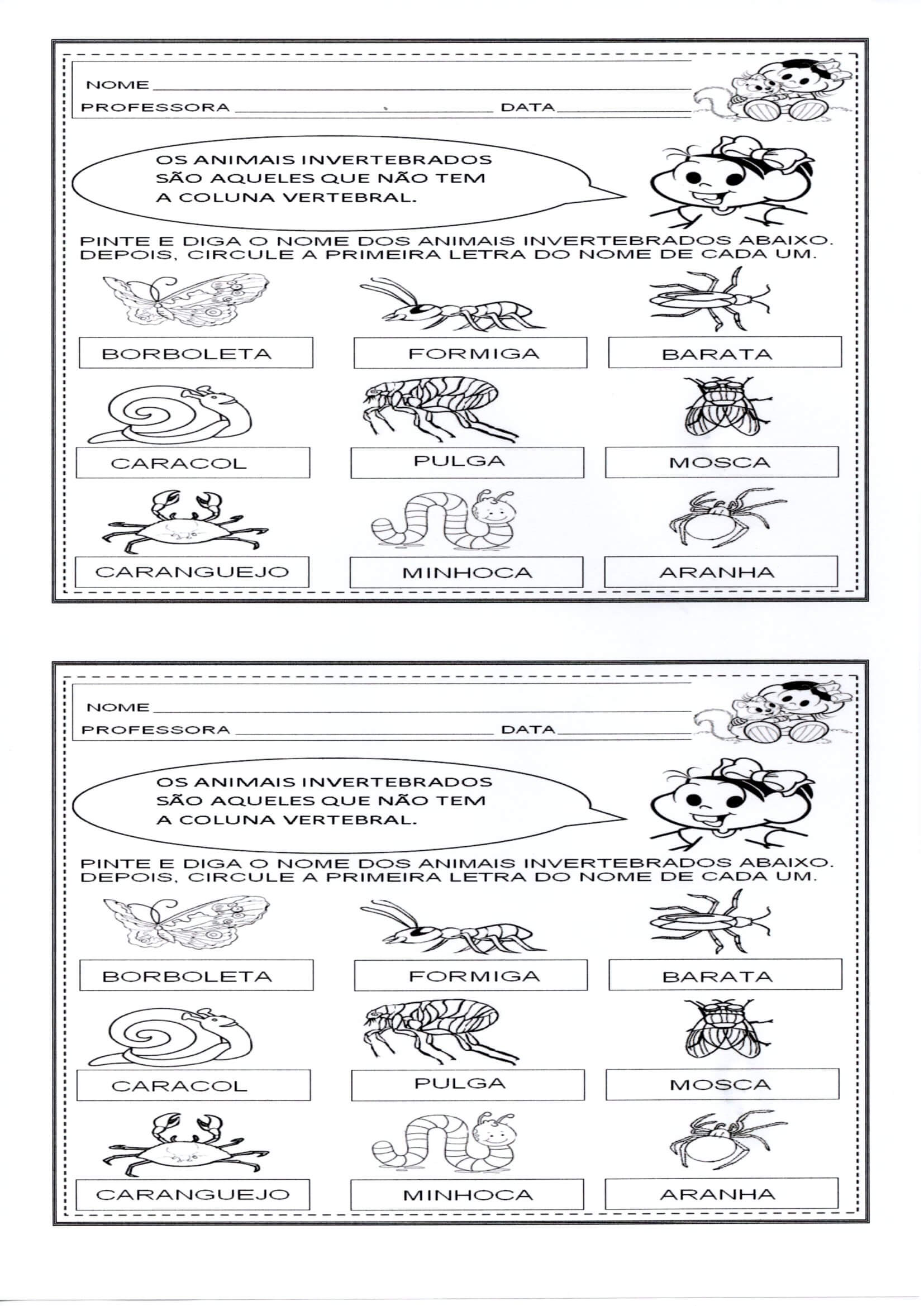 Vertebrados e Invertebrados-Definição e Grupos. Atividade de Ciências do Ensino Fundamental que permite trabalhar com animais vertebrados e invertebrados, traz sua definição e os separa em grupos.