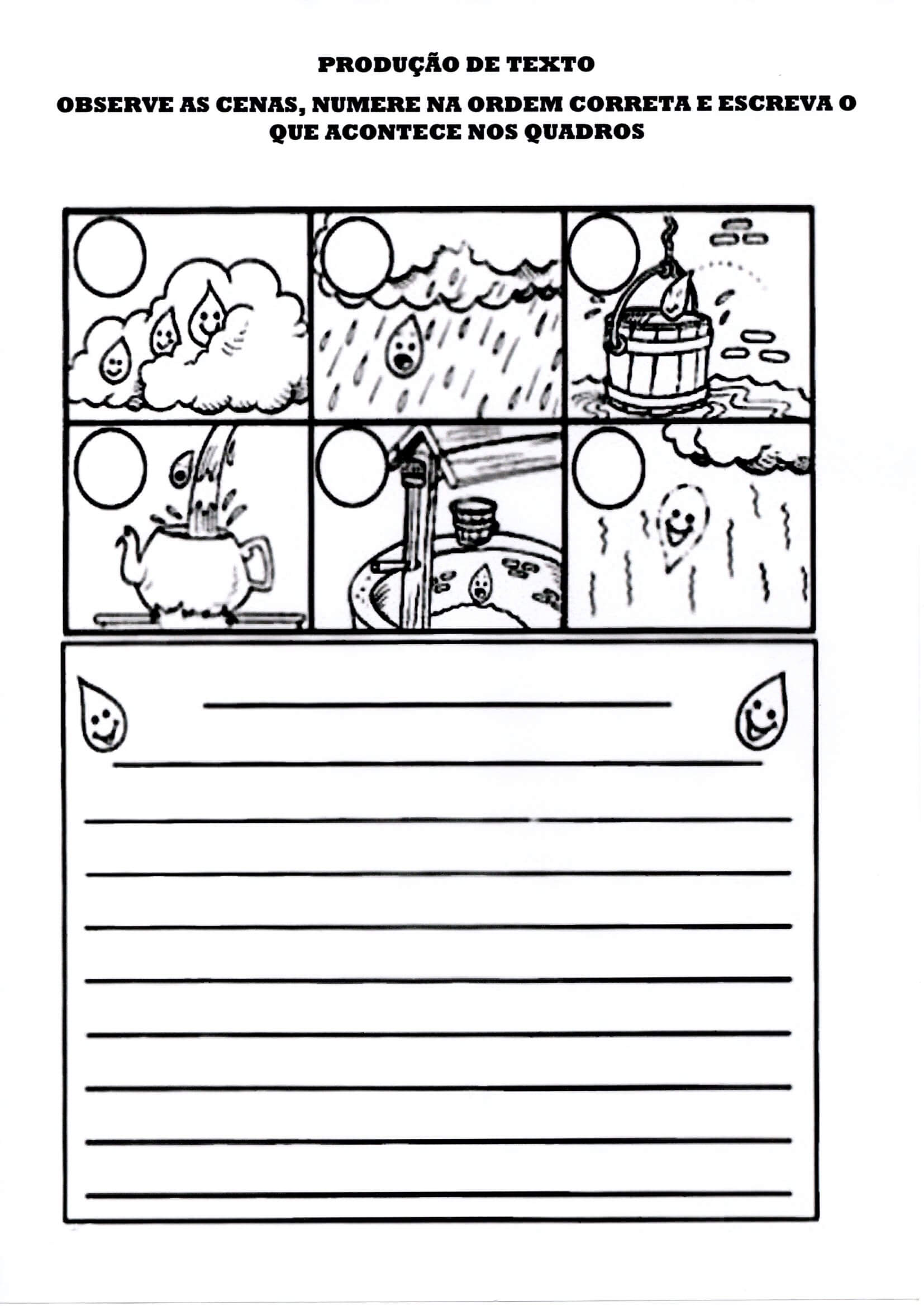 Produção de texto-Ciências-Ciclo da água. Produção de texto básico sobre os ciclos da água. Atividade de Língua Portuguesa sobre o ciclo da água.
