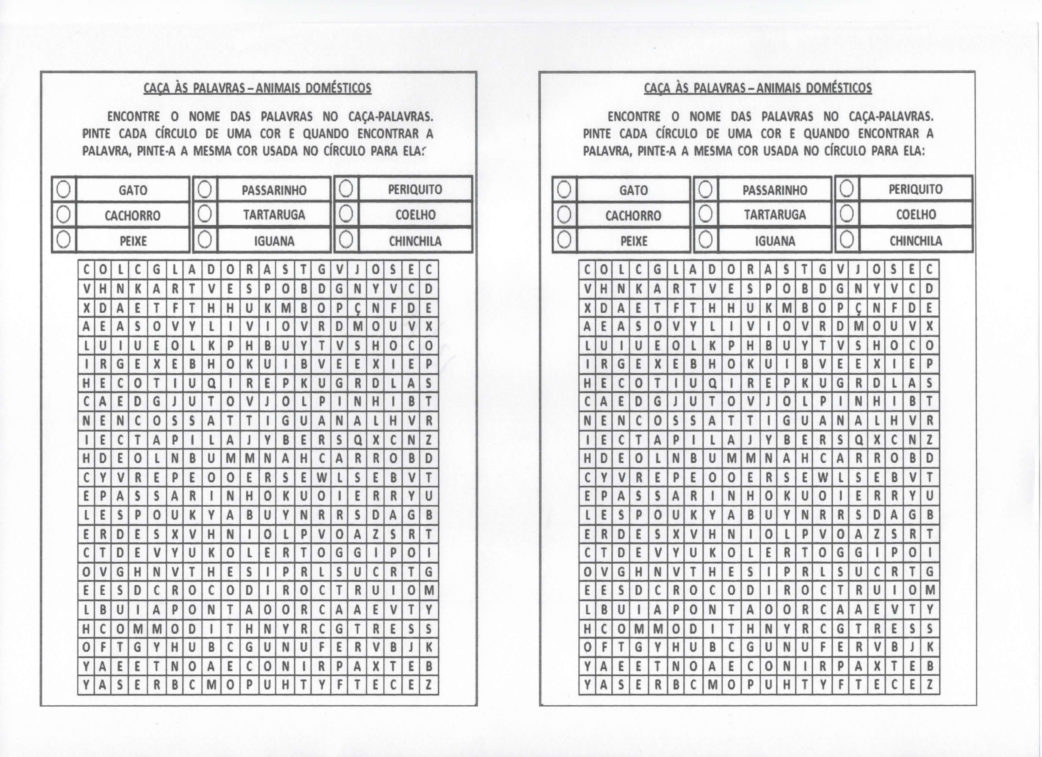 Caça-Palavras Animais Domésticos. Nesta atividade o aluno deve encontrar no caça-palavras as palavras que representam animais domésticos.
