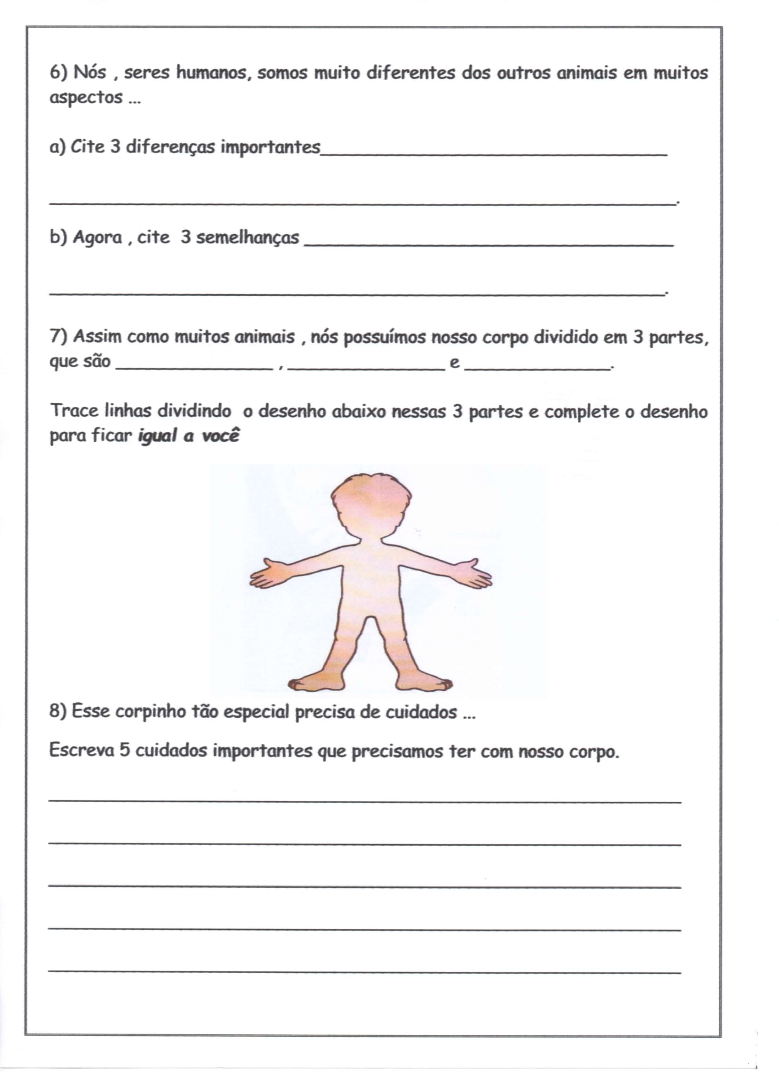 Avaliação-2 e 3 ano-Parte 2 Corpo Humano. Esta avaliação permite trabalhar com interpretação de texto, tirinha e imagens, os sentidos, estações do ano, ciências, natureza, corpo humano, higiene. Pode ser usada no 2º e no 3º anos do Ensino Fundamental.