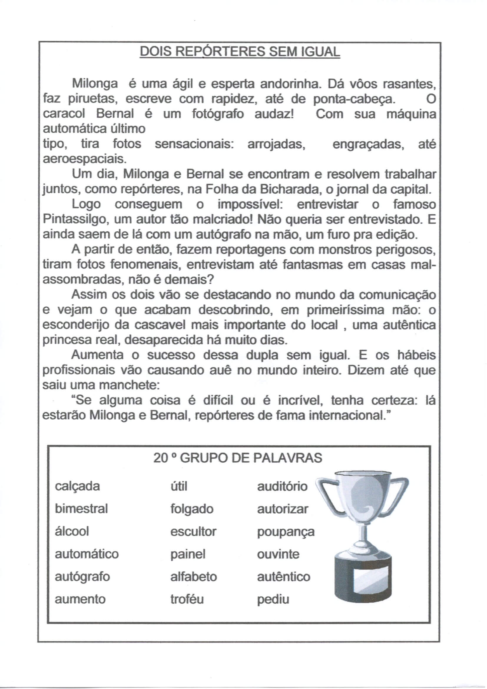Ortografia-Texto e palavras com L e U. Nesta atividade os alunos podem trabalhar com palavras de finais diferenciados com L ou U.