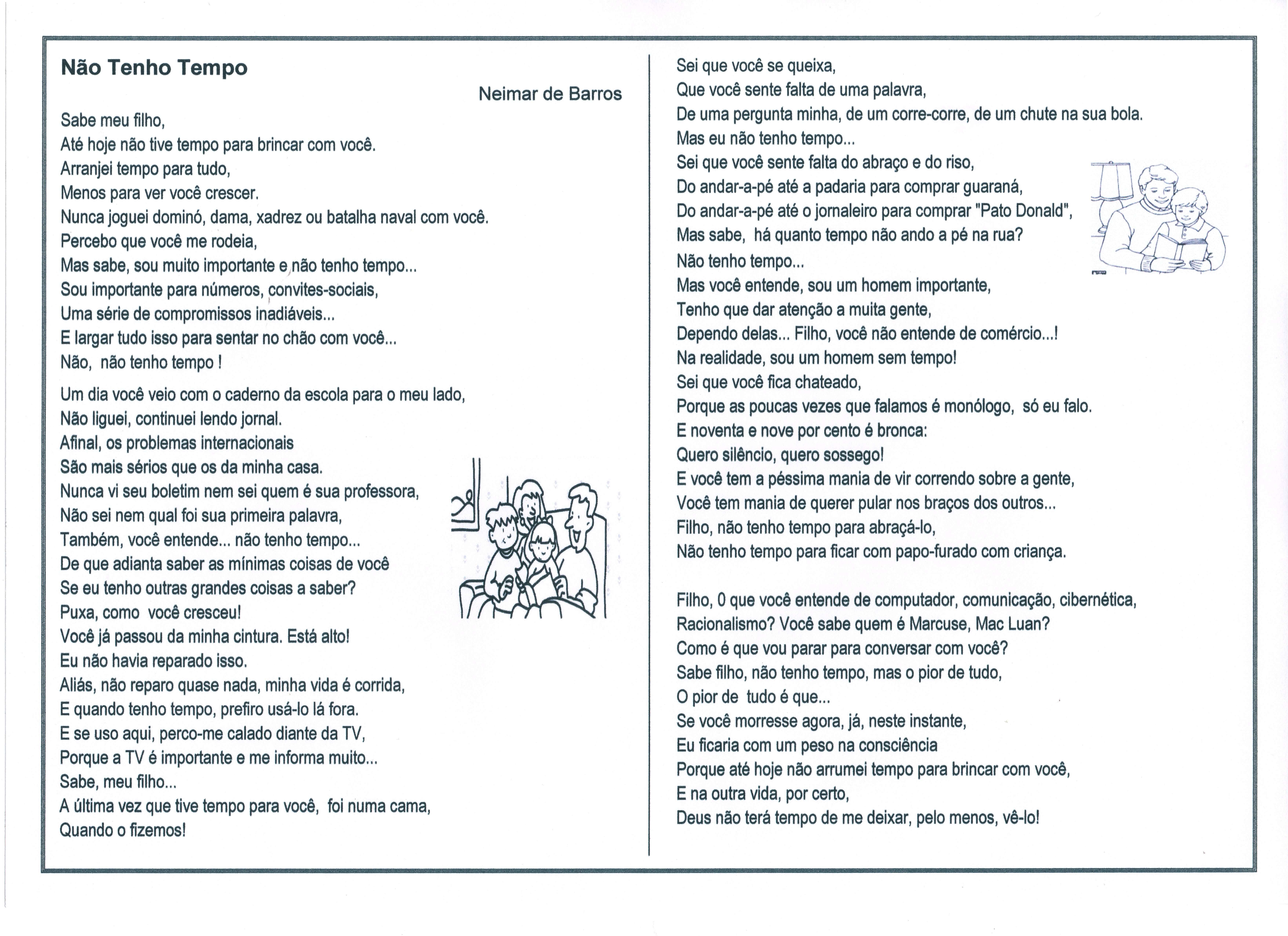 Mensagem para reunião de pais: “Não tenho tempo” de Neimar de Barros.