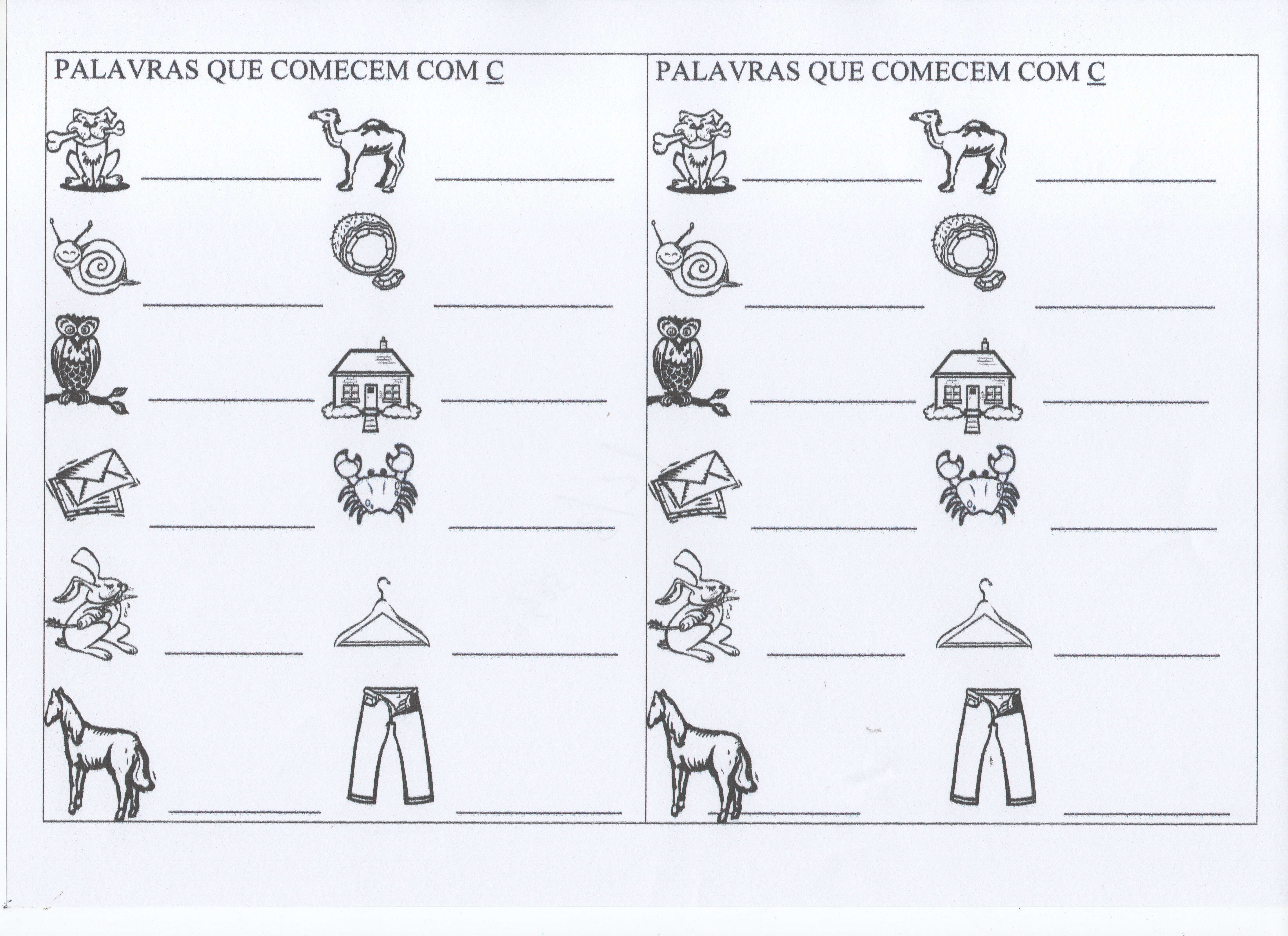 Palavras que começam com C e D. Sequência de atividades com o alfabeto e cujas letras vão de A a X. Excelente atividade para memorização da escrita.