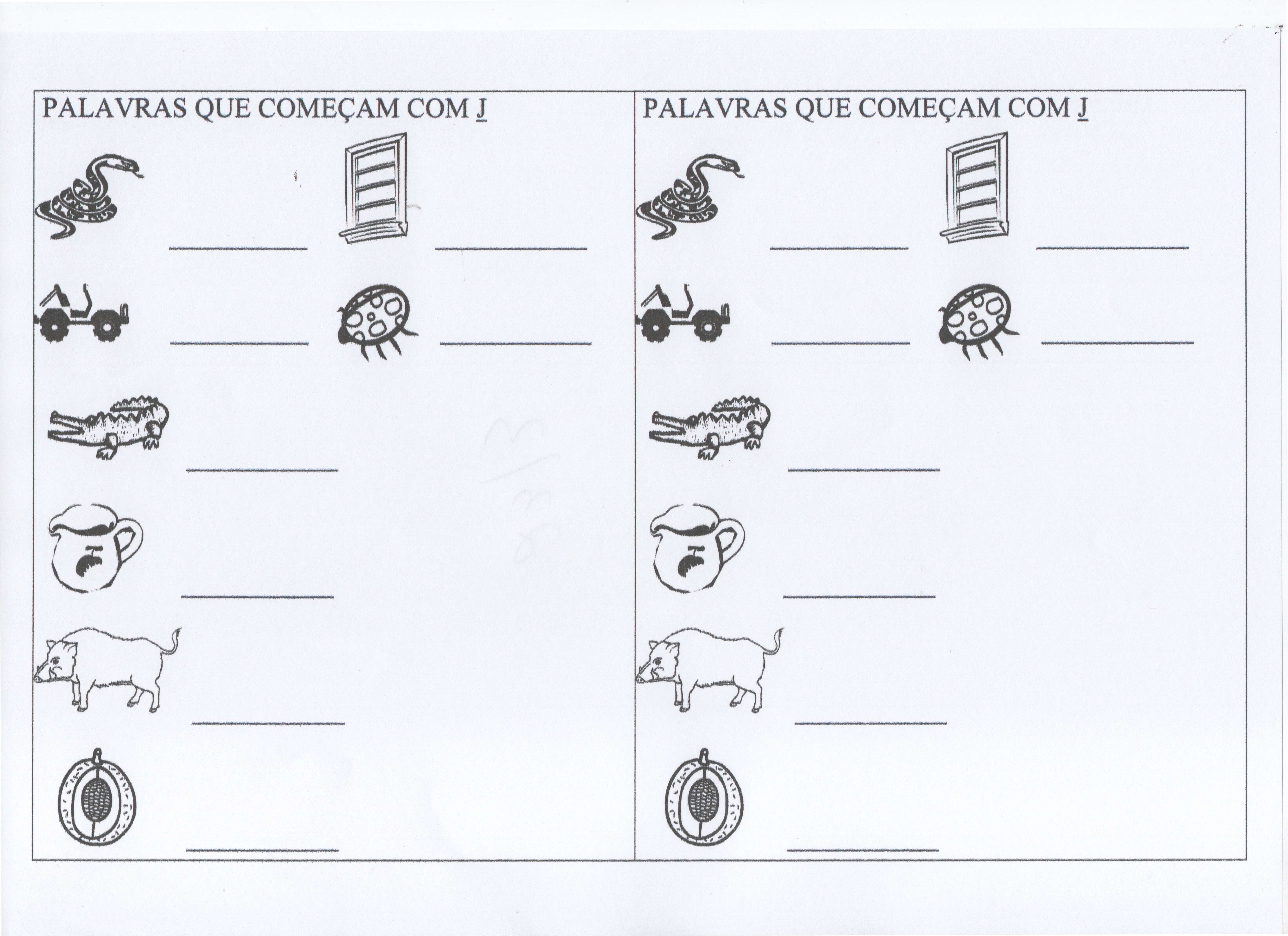 Palavras que começam com J e L. Sequência de atividades com o alfabeto e cujas letras vão de A a X. Excelente atividade para memorização da escrita.