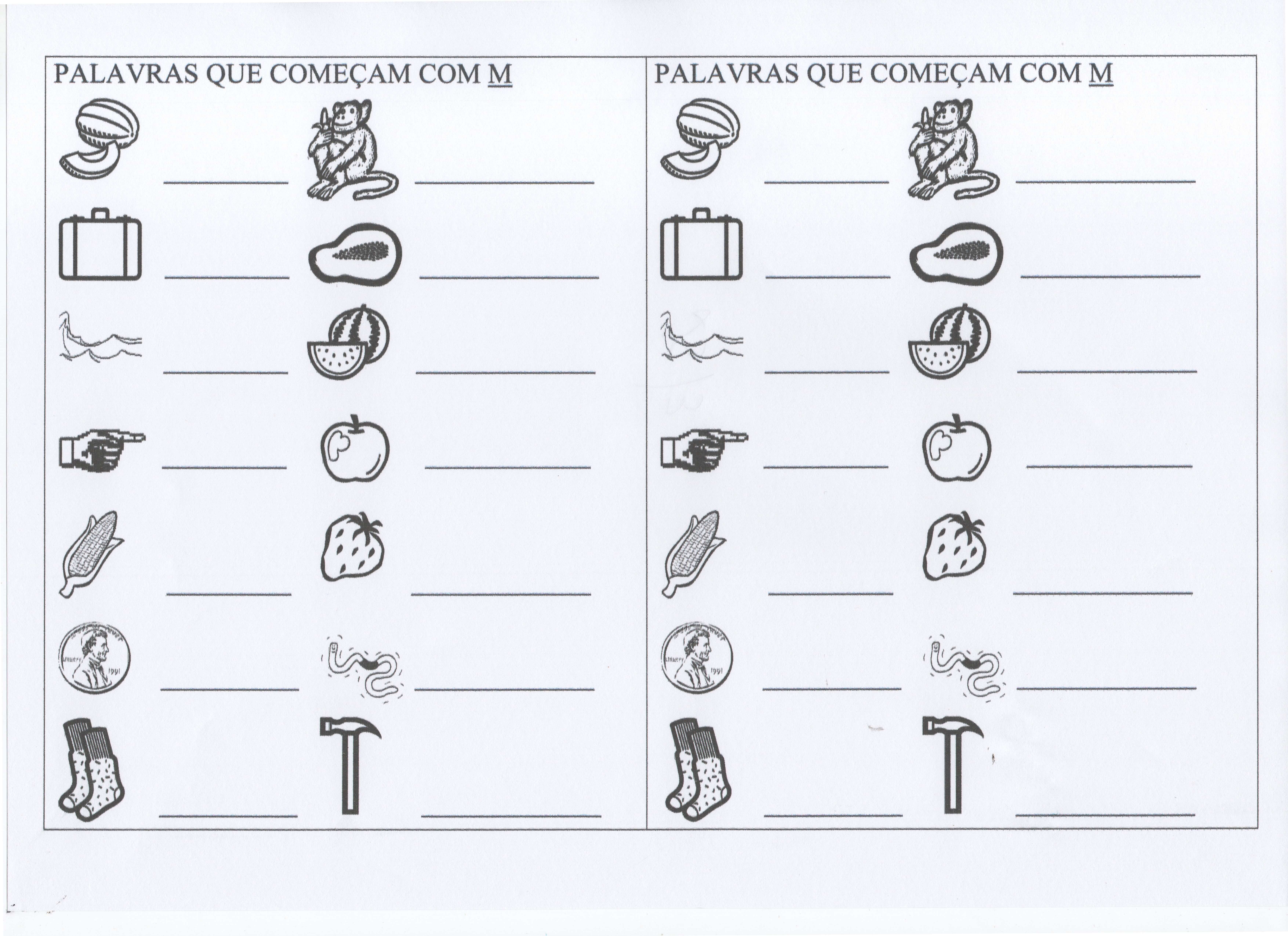 Palavras que começam com M e N. Sequência de atividades com o alfabeto e cujas letras vão de A a X. Excelente atividade para memorização da escrita.