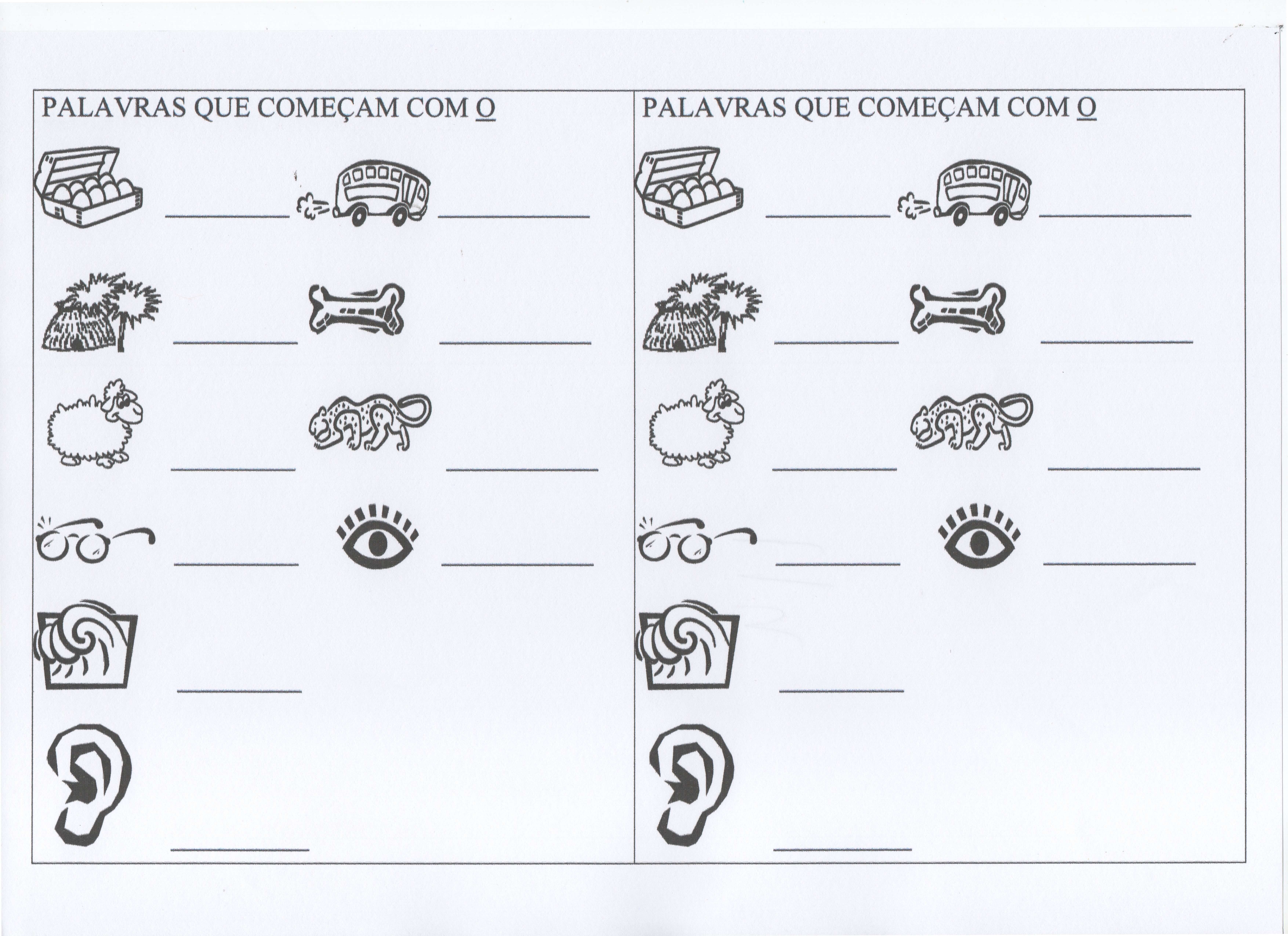 Palavras que começam com O e P. Sequência de atividades com o alfabeto e cujas letras vão de A a X. Excelente atividade para memorização da escrita.