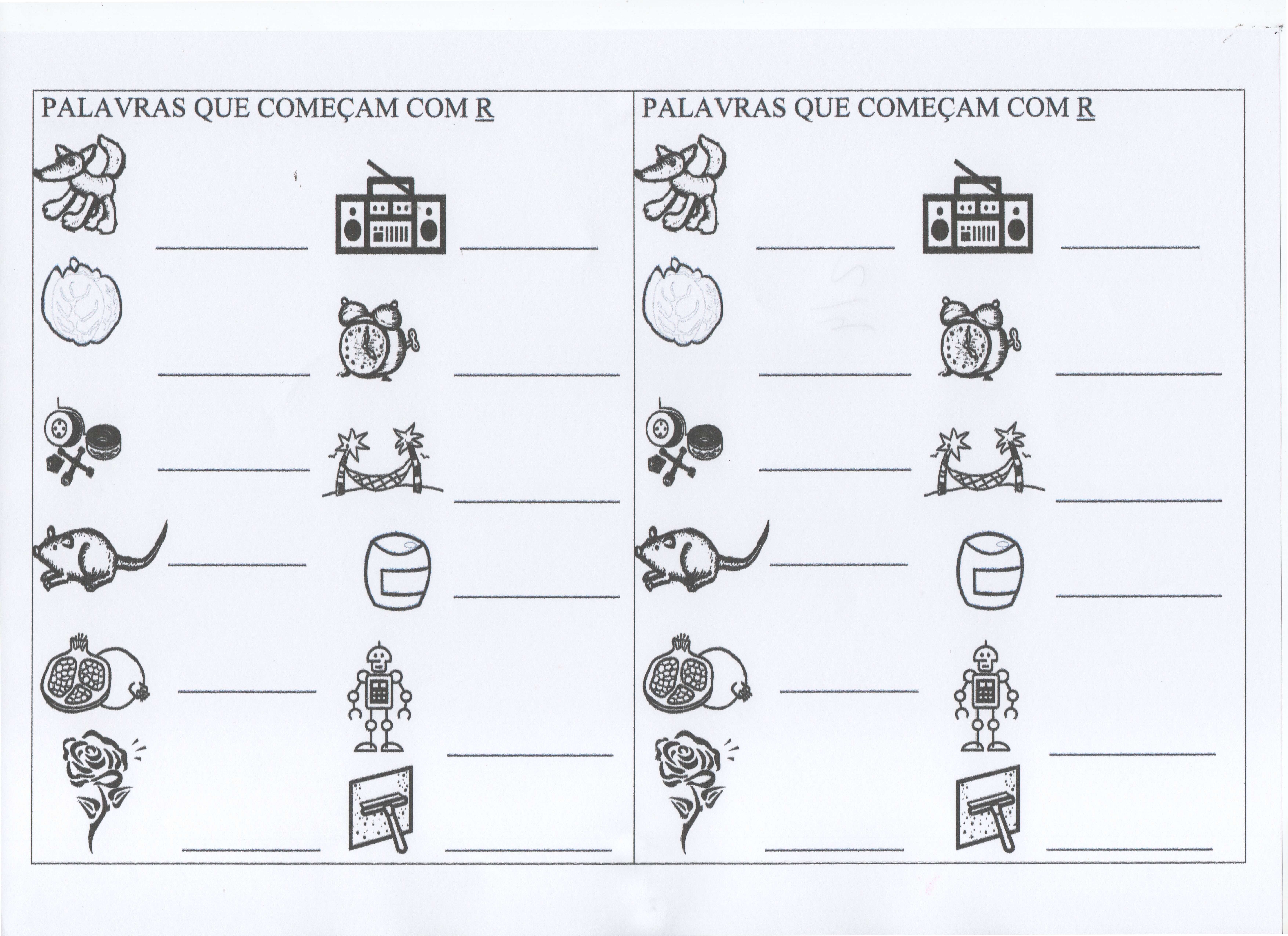 Palavras que começam com R e S. Sequência de atividades com o alfabeto e cujas letras vão de A a X. Excelente atividade para memorização da escrita.
