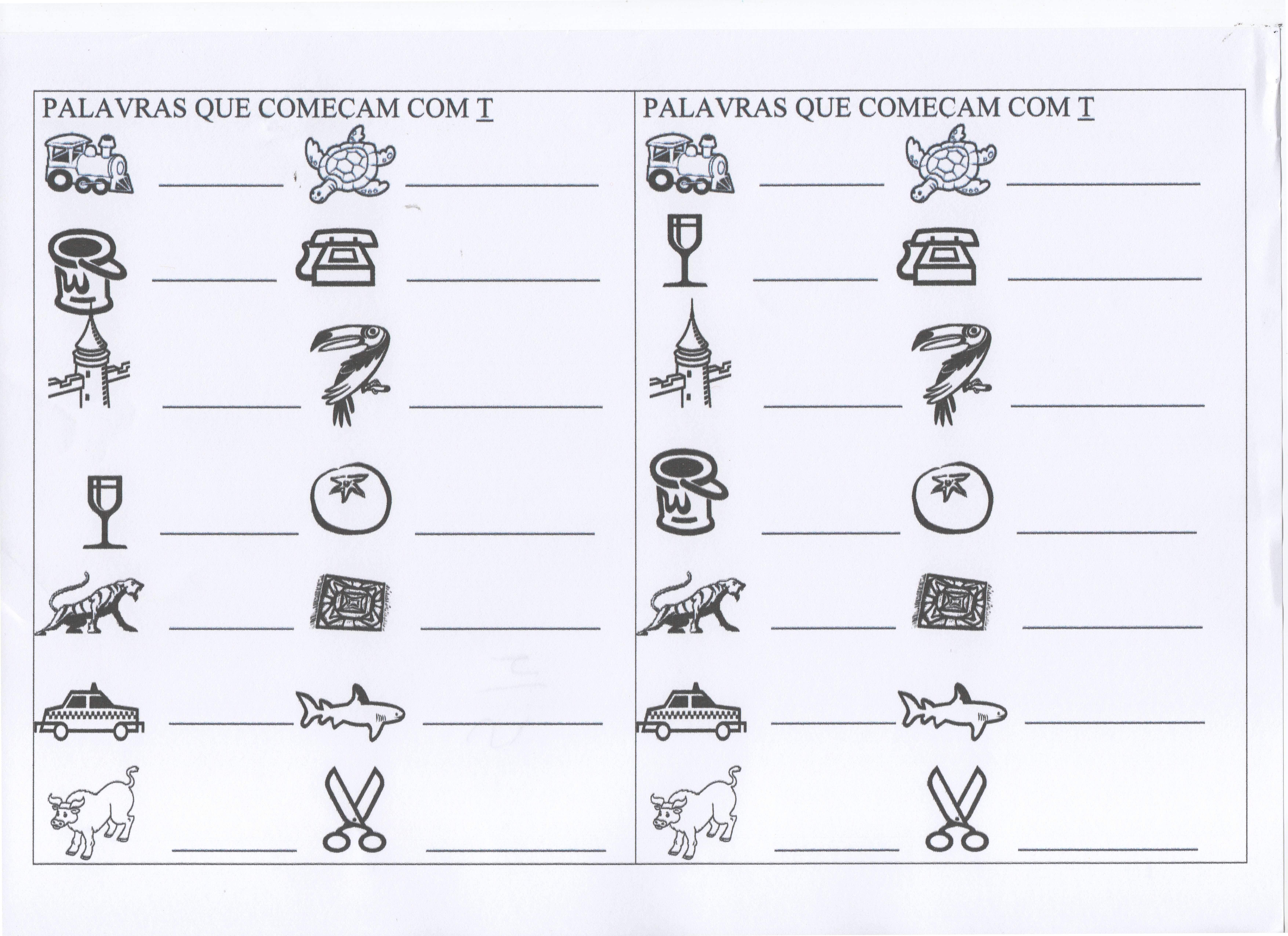 Palavras que começam com T e U. Sequência de atividades com o alfabeto e cujas letras vão de A a X. Excelente atividade para memorização da escrita.