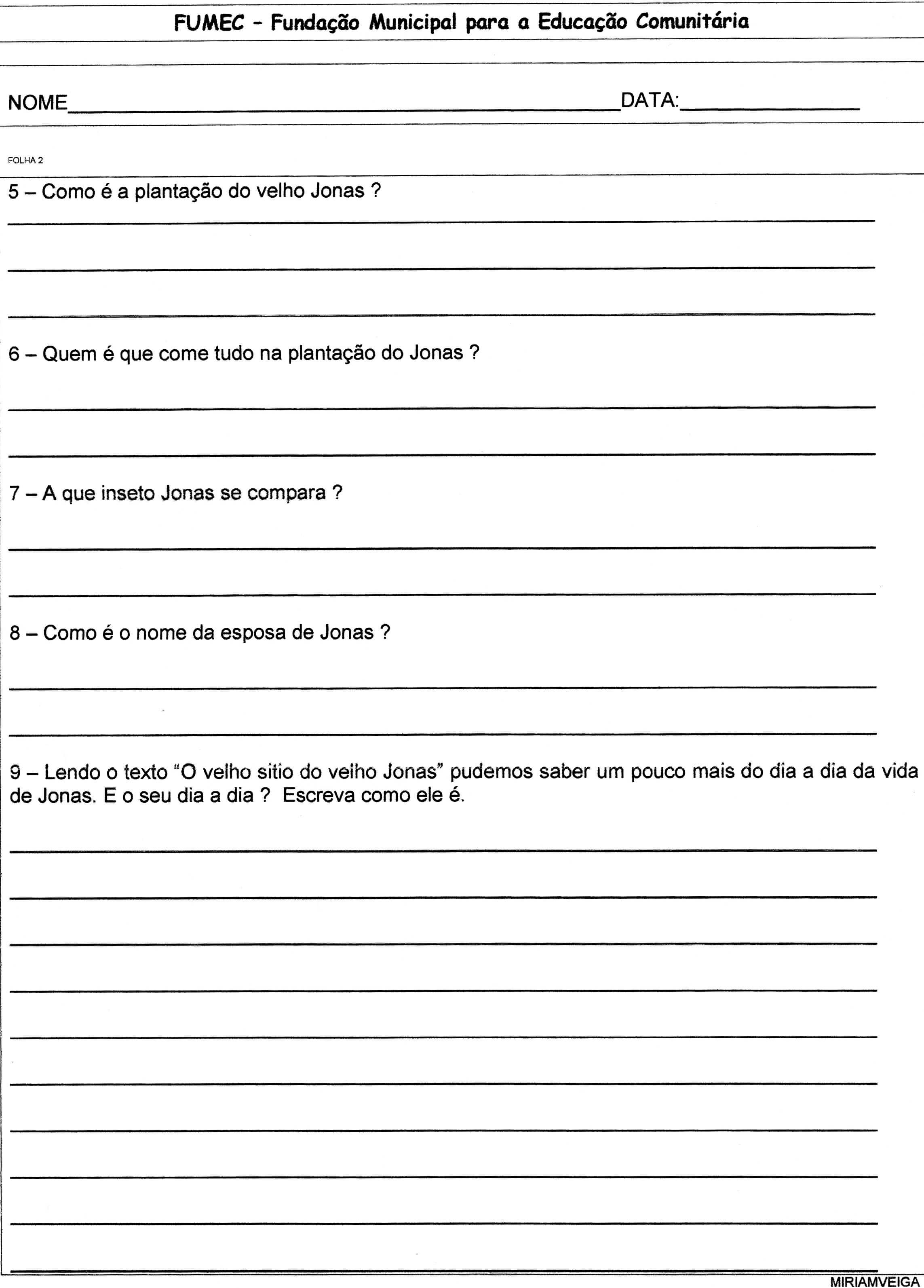 LEITURA E INTERPRETAÇÃO-O VELHO JONAS 2. Atividade de Leitura e Interpretação “O Sítio do Velho Jonas”, que pode ser usada nos anos finais do Ensino Fundamental ou na EJA, parte 2.