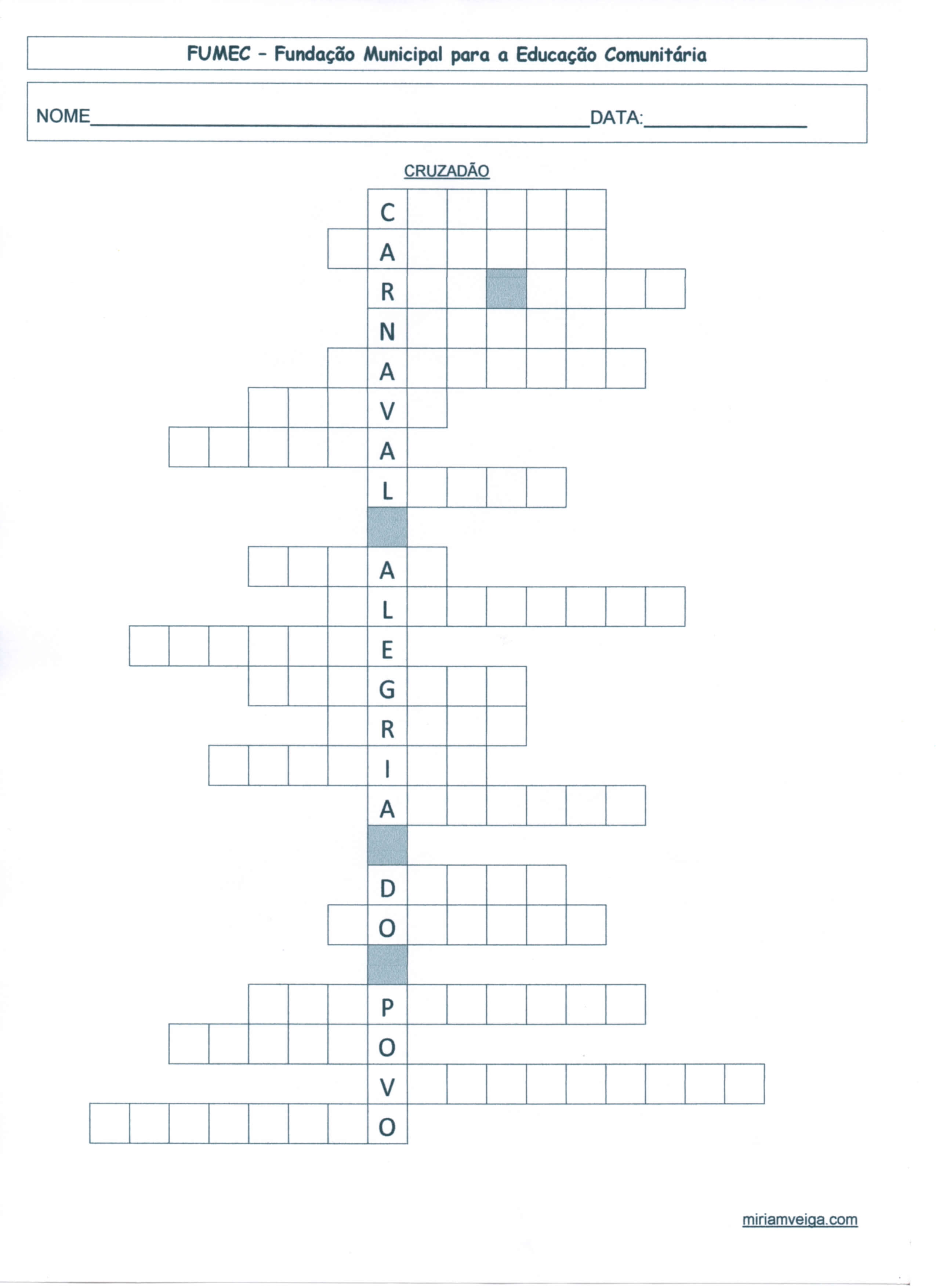 …Atividades de Carnaval para EJA e EF-Parte 2. Esta atividade usa o Tema Carnaval para trabalhar com EJA-Educação de Jovens e Adultos – a cultura da festa, ordem alfabética, cruzadão, marchinha, letras iniciais, escrita e ortografia.