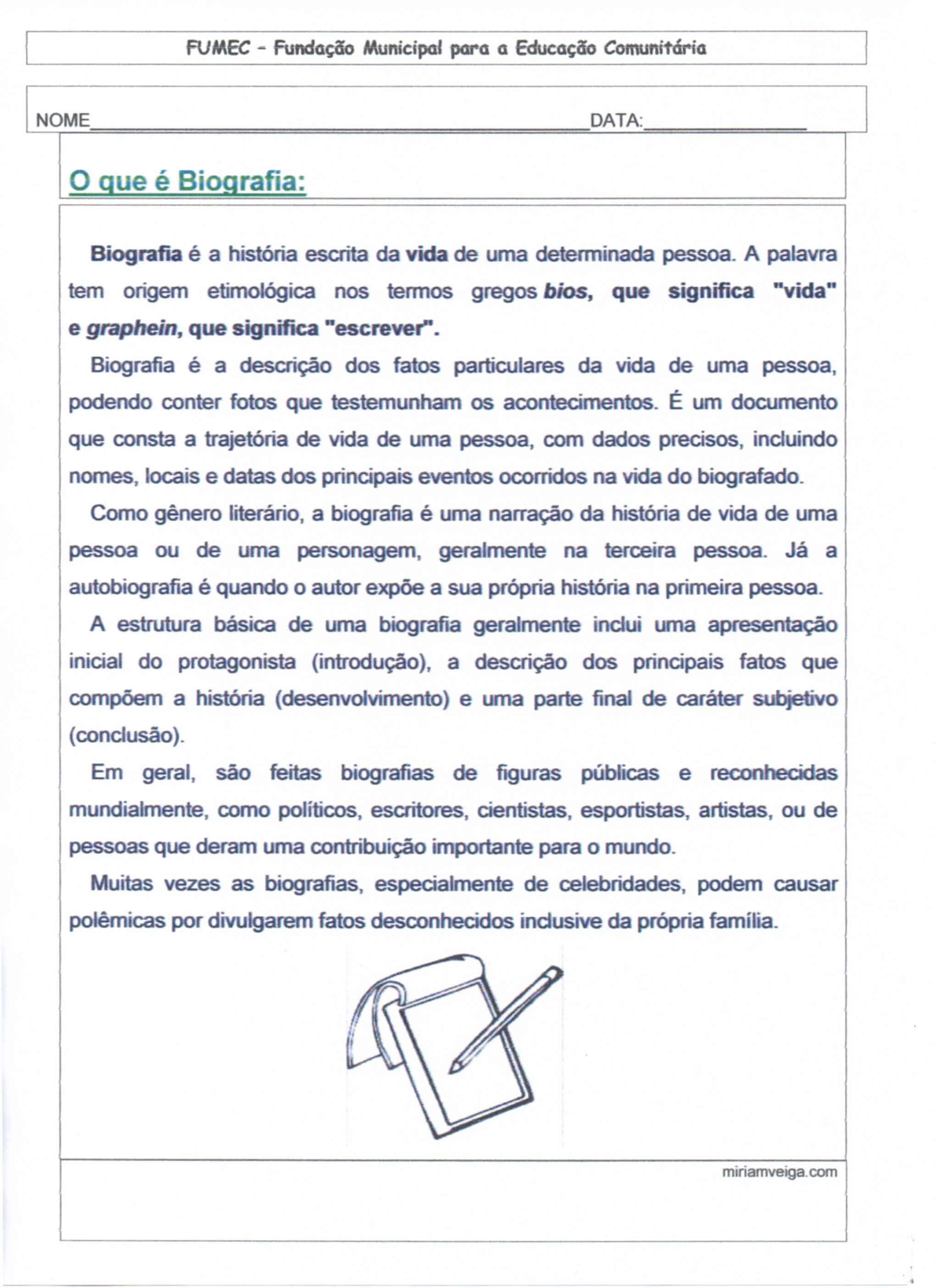Dia Internacional da Mulher-EJA-3 – BO que é Biografia. Atividade do Dia Internacional da Mulher para EJA que aborda a biografia de Chiquinha Gonzaga e descreve o que é uma biografia.
