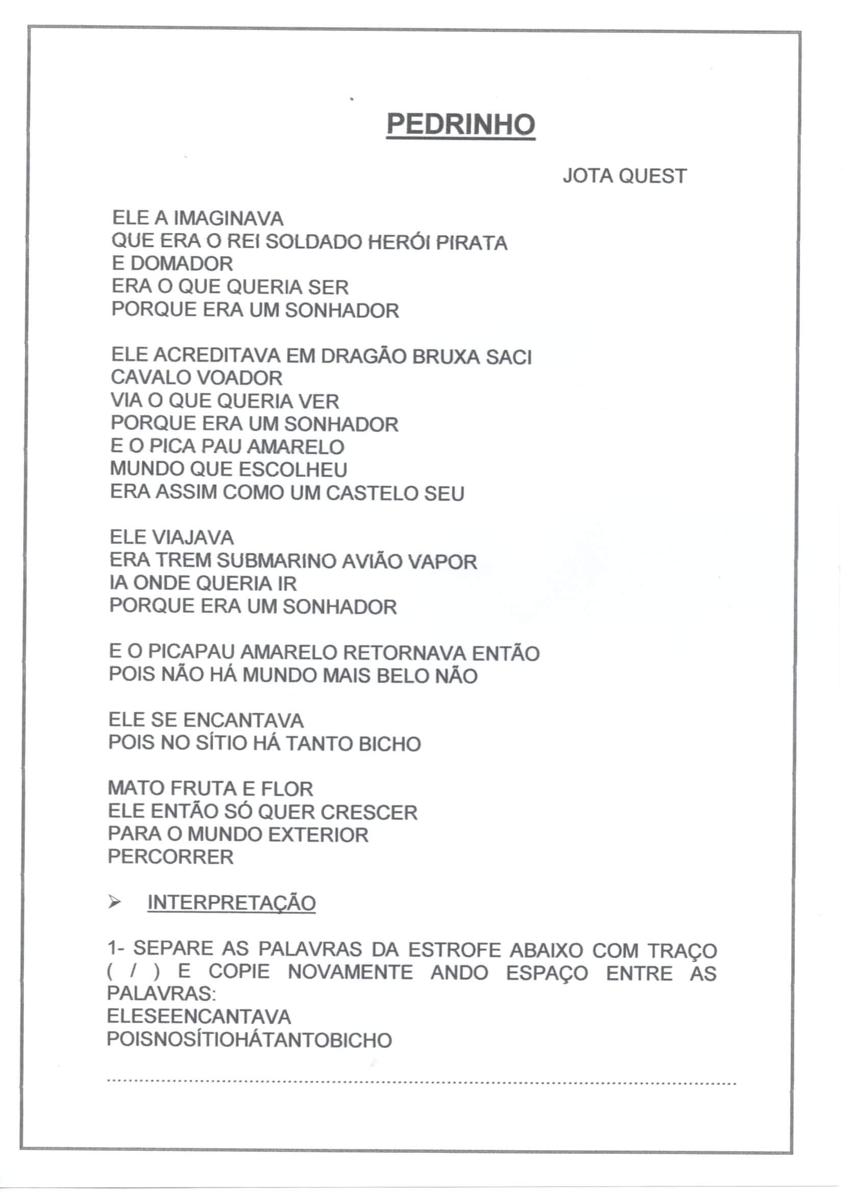 Com Interpretação de textos diversos, descrição dos personagens através do texto, produção de textos, escrever uma cantiga, completar tabelas com sílabas, cruzadinha, adivinhas,.