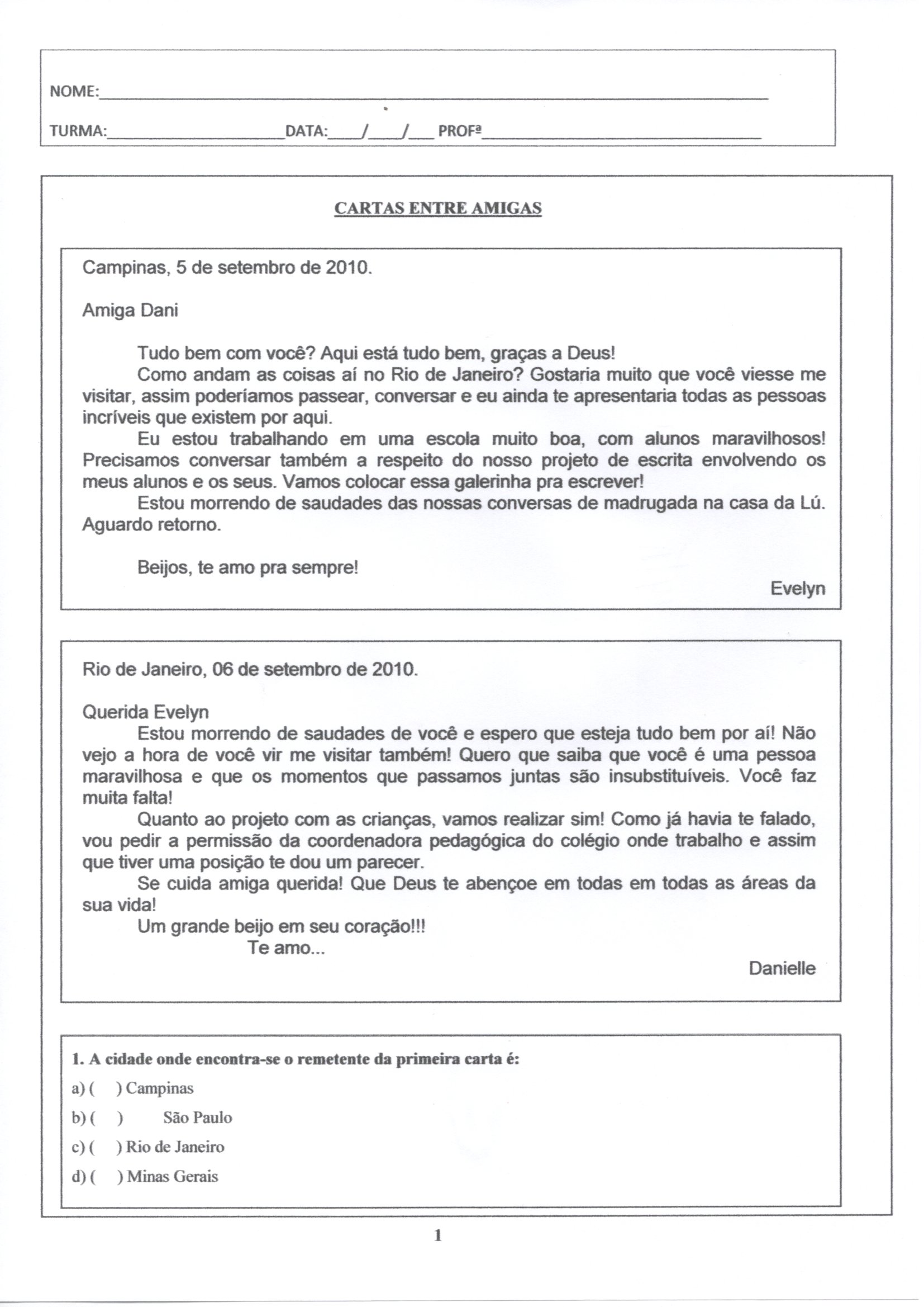Avaliação de Língua Portuguesa 3-4 Ano-Gênero Carta. Esta Avaliação para os 3ºe 4º Anos trabalha com Leitura e Interpretação de texto do Gênero Carta e avalia com questões de múltipla escolha.