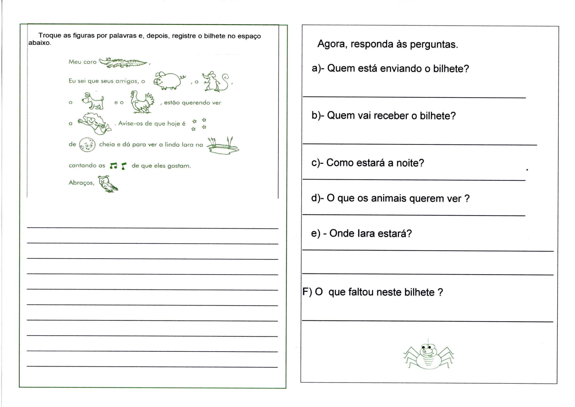 Bilhete-Interpretação Questões e Respostas. Atividade de interpretação de bilhete com Questões e Respostas Trabalho com Bilhete para anos iniciais do Ensino Fundamental.
