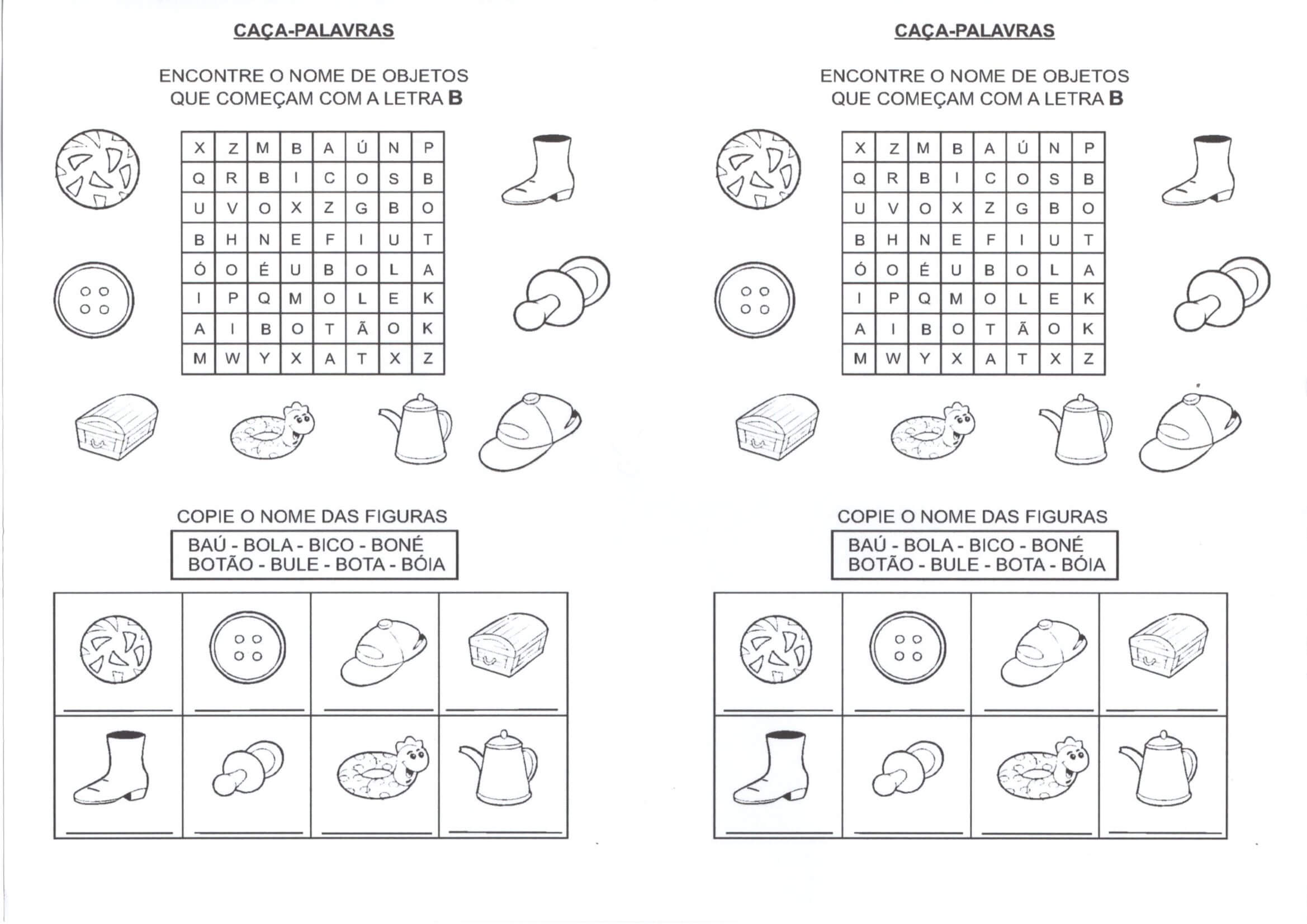 Caça-Palavras-Língua Portuguesa-Letra B. Nesta atividade os alunos devem procurar os objetos que começam com a letra “B”.