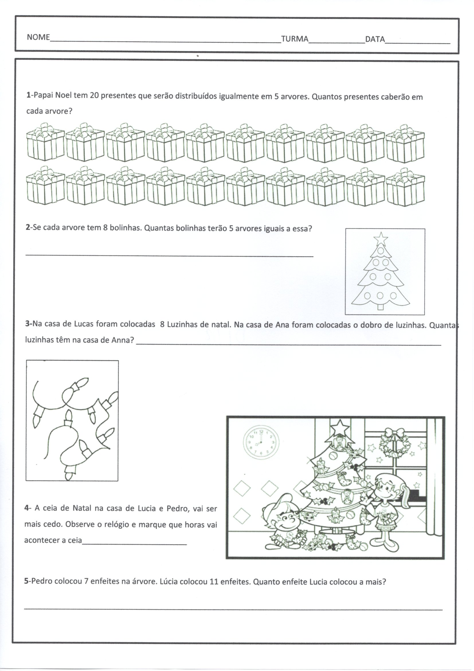 Atividade de Matemática-Divisão Multiplicação Contas. Atividade de matemática usa o Tema do Natal e tem vários exercícios com Adição, Divisão, Multiplicação, Contas, Dobro, pronta para imprimir e usar.