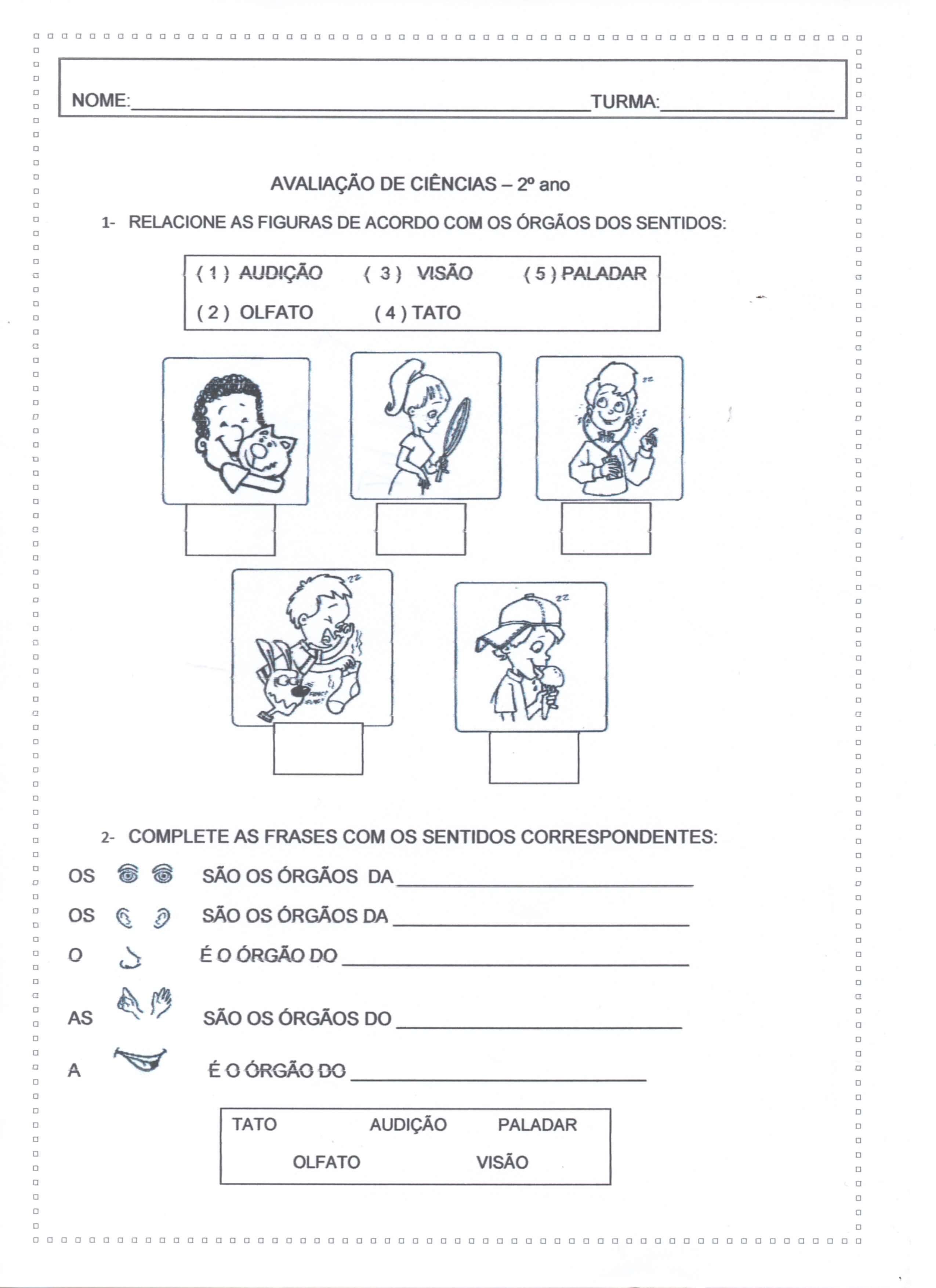 …Avaliação de Ciências-Órgãos dos sentidos. Avaliação de Ciências 2º ANO.