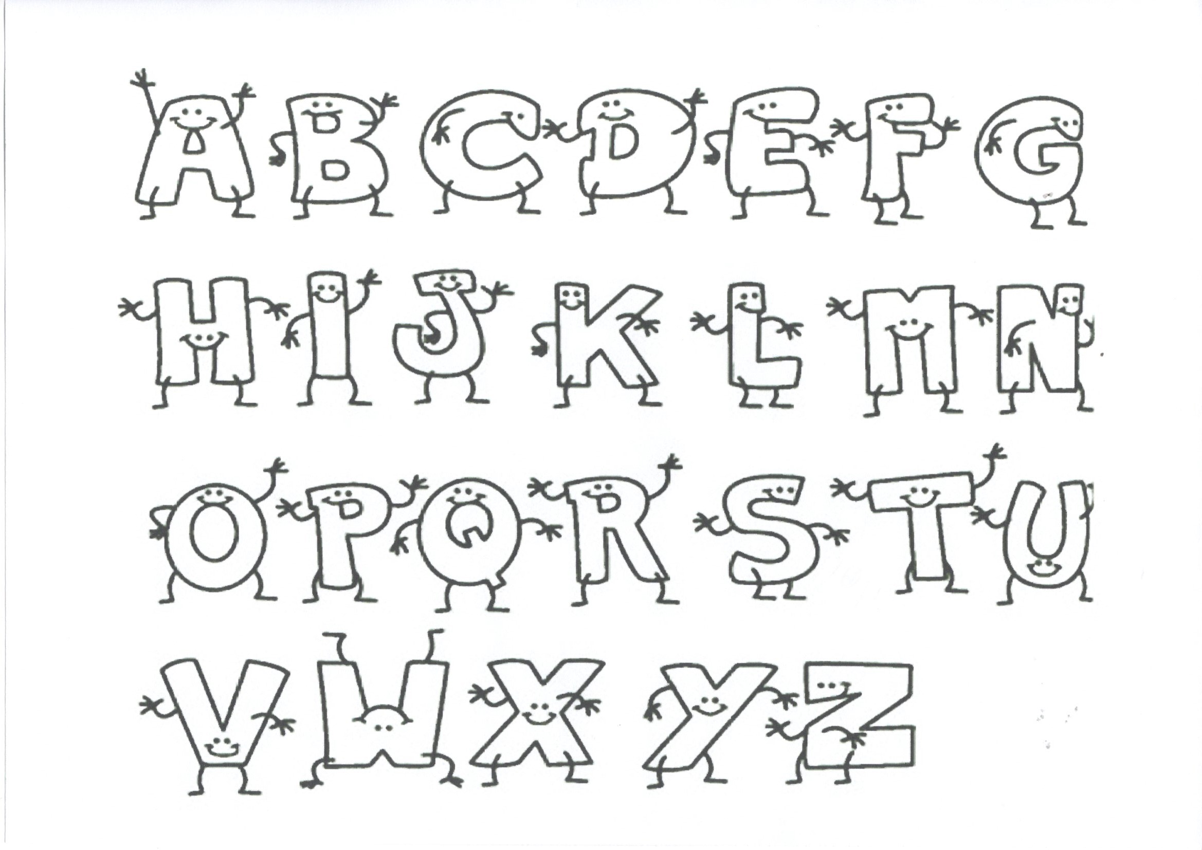 Alfabeto animado com carinhas. Alfabeto com as letras animadas com desenhos de carinhas, para colorir e colar no caderno.