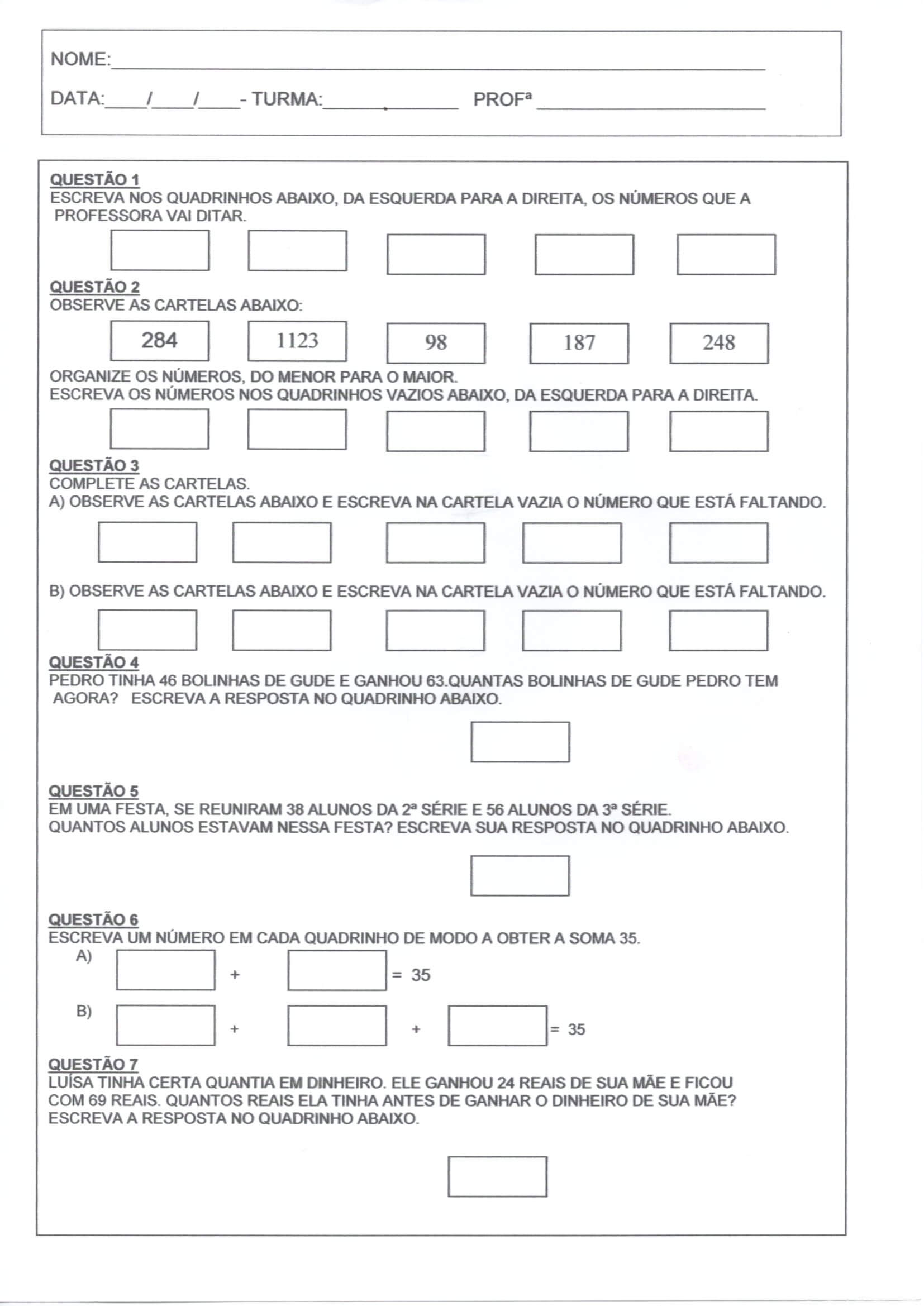 Numerais-Valor Tabela Relógio-Parte 2 é uma atividade de Numerais que trabalha valor absoluto e relativo, ordem crescente dos números pares, tabela, operações, medidas de tempo, problemas, relógio analógico e gráfico.