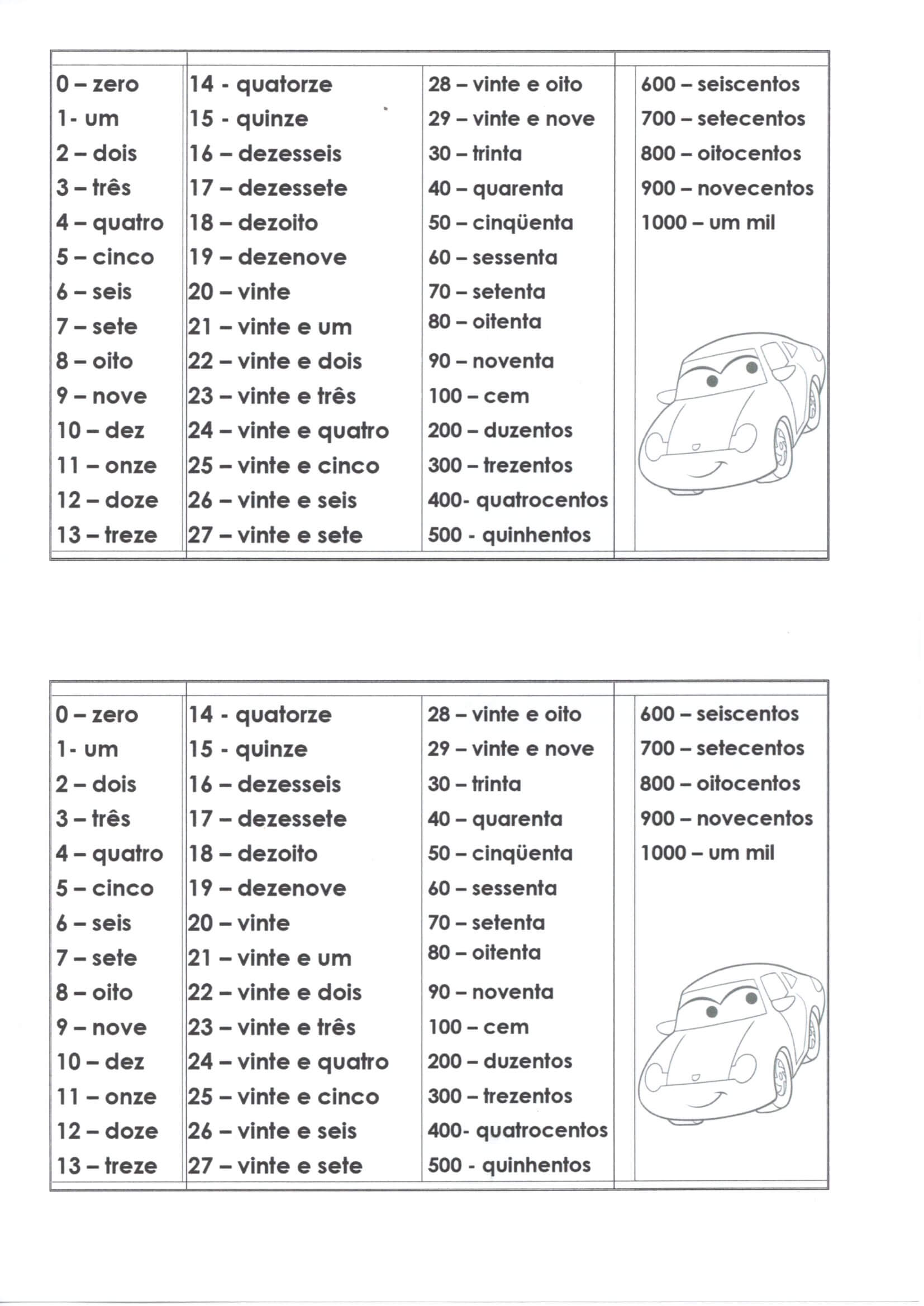 Numerais-Valor Tabela Relógio-Parte 2